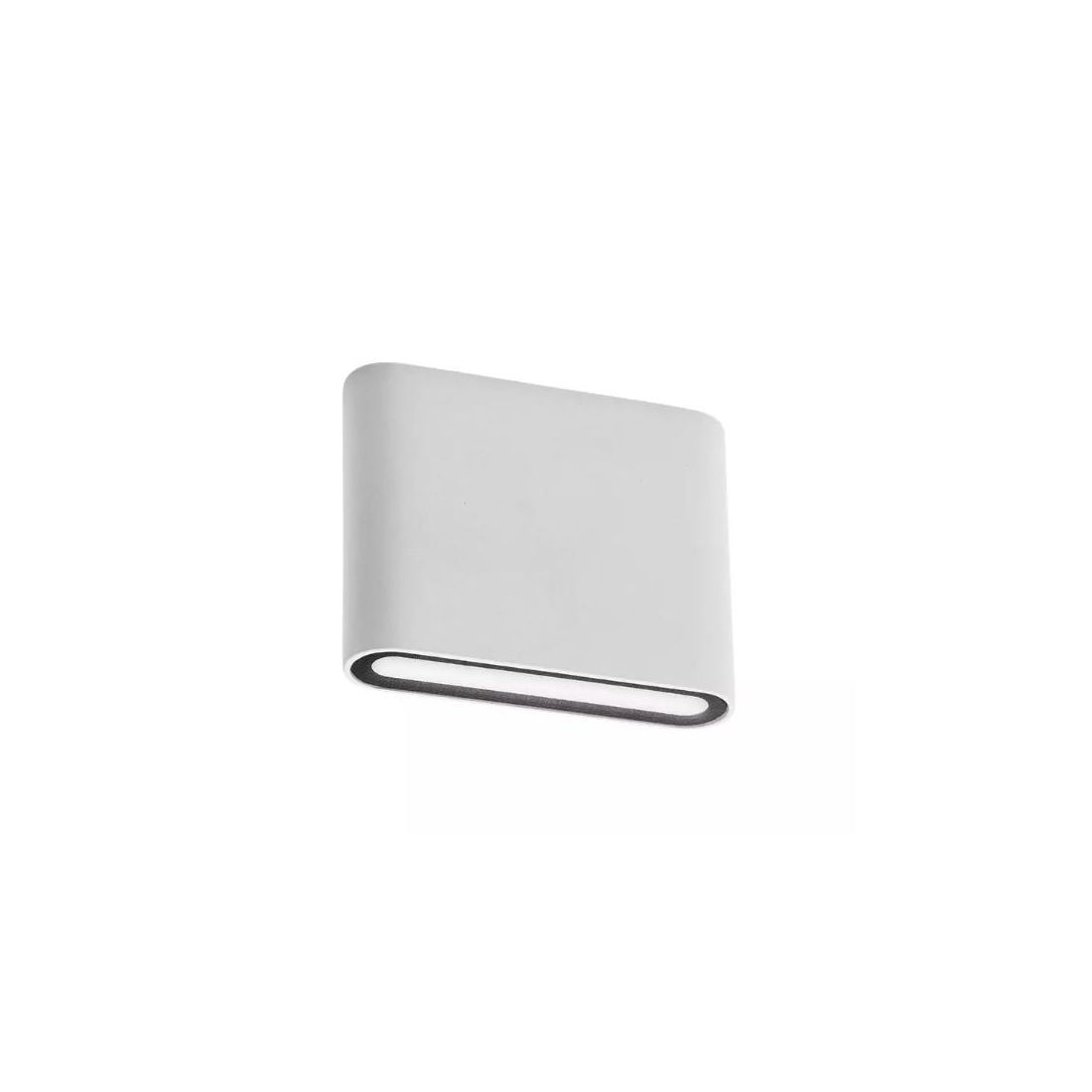 Lampada da parete con una forma stondata, dal design moderno, che emette una luce diretta/indiretta rivolta sia verso l'alto che verso il basso, e che viene realizzata in pressofusione di alluminio verniciato a polveri nelle finiture Bianco opaco, Antracite oppure Marrone scuro con diffusori in vetro satinato che assicurano una distribuzione della luce morbida e omogenea, priva di abbagliamento.
