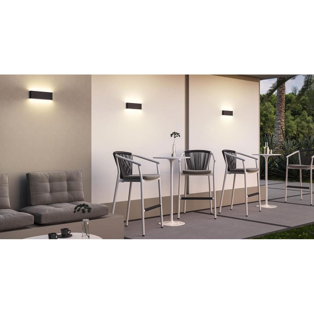 Grazie al suo grado di protezione IP54, Klippe è specificamente progettato e certificato per l'utilizzo in aree esterne esposte, è quindi la soluzione ideale e durevole per l'illuminazione di porticati, balconi, gazebi, terrazze e sulle facciate di edifici pubblici e privati assicurando una resistenza ottimale e duratura contro gli agenti atmosferici più aggressivi come pioggia battente, vento, umidità e raggi UV.
