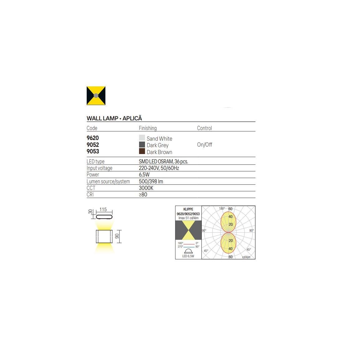 KLIPPEKLIPPE LAMPADA DA PARETE A LED IN 3 MISURE LUCE 3000K BIEMISSIONE IP54 ALLUMINIO BIANCO,MARRONE E ANTRACITE