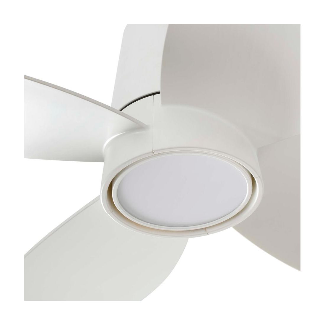 Ventilatore a soffitto dal design moderno che si presenta con una struttura realizzata in alluminio Bianco con 4 pale in ABS che integra una sorgente luminosa a Led da 18W racchiusa in un diffusore bianco opale in grado di offrire una resa luminosa di 831 lumen. Il sistema di illuminazione è Dimmerabile permettendo la regolazione della temperatura colore su tre livelli: 2700K – luce calda, 4000K – luce bianca naturale e 6000K – luce fredda.