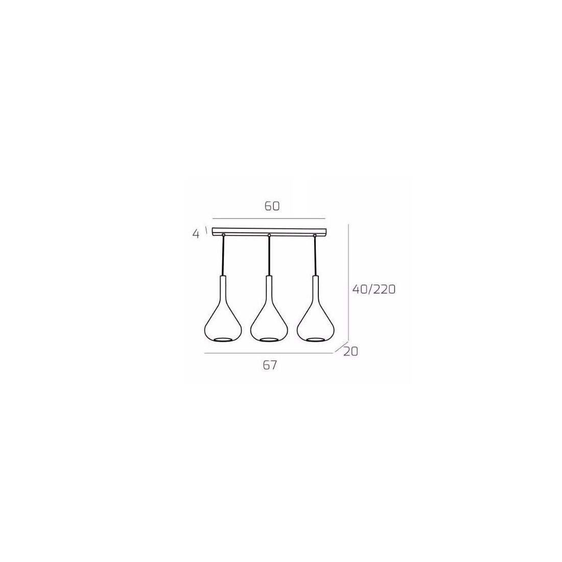 KONA SOSPENSIONE TONDA IN FINITURA OTTONE CON 3 DIFFUSORI A CONO PENDENTI IN VETRO...