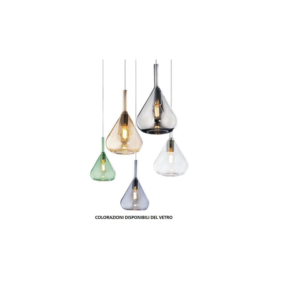 KONA SOSPENSIONE SINGOLA CON BASE IN METALLO E DIFFUSORE A CONO PENDENTE IN VETRO 5 COLORI