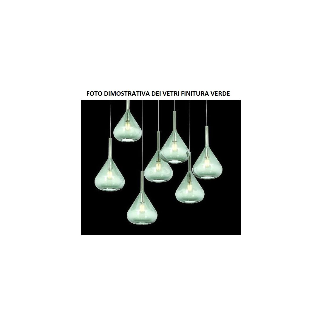 KONA SOSPENSIONE ROTONDA D80 IN METALLO CROMO CON 12 DIFFUSORI A CONO IN VETRO COLORATO