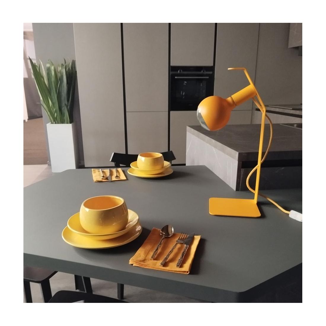 Lampada da tavolo con un nome del tutto originale che deriva dal fatto che l'azienda produttrice Filotto non sia riuscita a dare una precisa definizione a questo "KOSO"; grande e bellissima, la lampada si presenta con un altezza di cm 50 e viene realizzata in metallo disponibile in ben 8 diverse colorazioni, a vostra scelta, tra cui Bianco, Grigio, Verde, Panna, Giallo, Arancio, Rosso e Nero.
