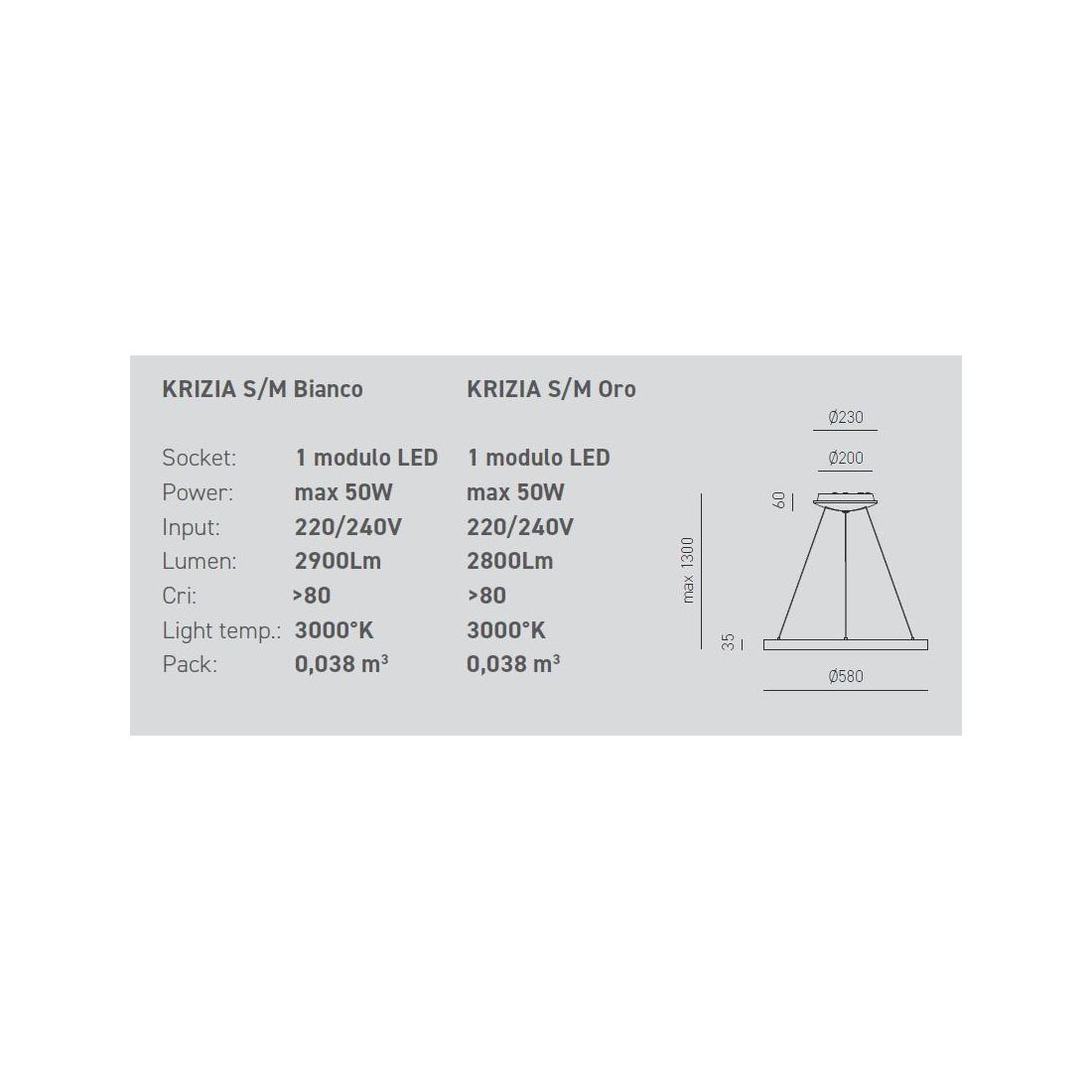 KRIZIA S2 SOSPENSIONE MODERNA CON DOPPIO ANELLO LED 88W LUCE DIMMERABILE BIANCO O ORO...