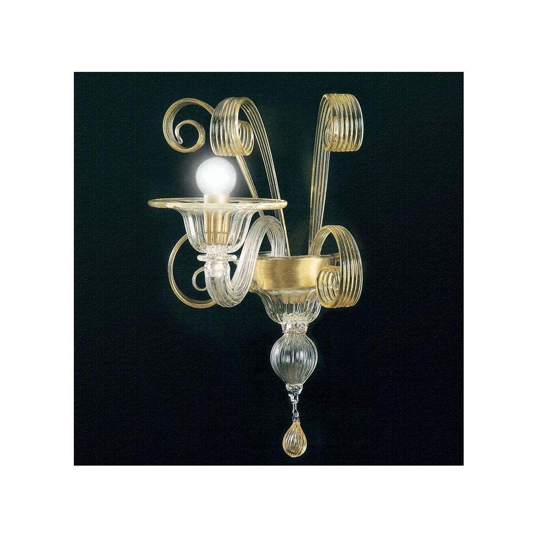 LAGUNA APPLIQUE 2 LUCI CLASSICO IN VETRO DI MURANO LAVORATO A MANO FINITURA ORO O...