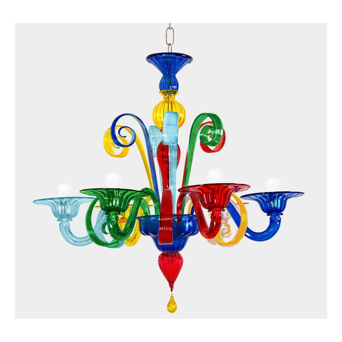 LAGUNA MULTICOLOR LP6LAGUNA MULTICOLOR LAMPADARIO 6 LUCI IN VETRO DI MURANO COLORATO LAVORATO A MANO MADE IN ITALY