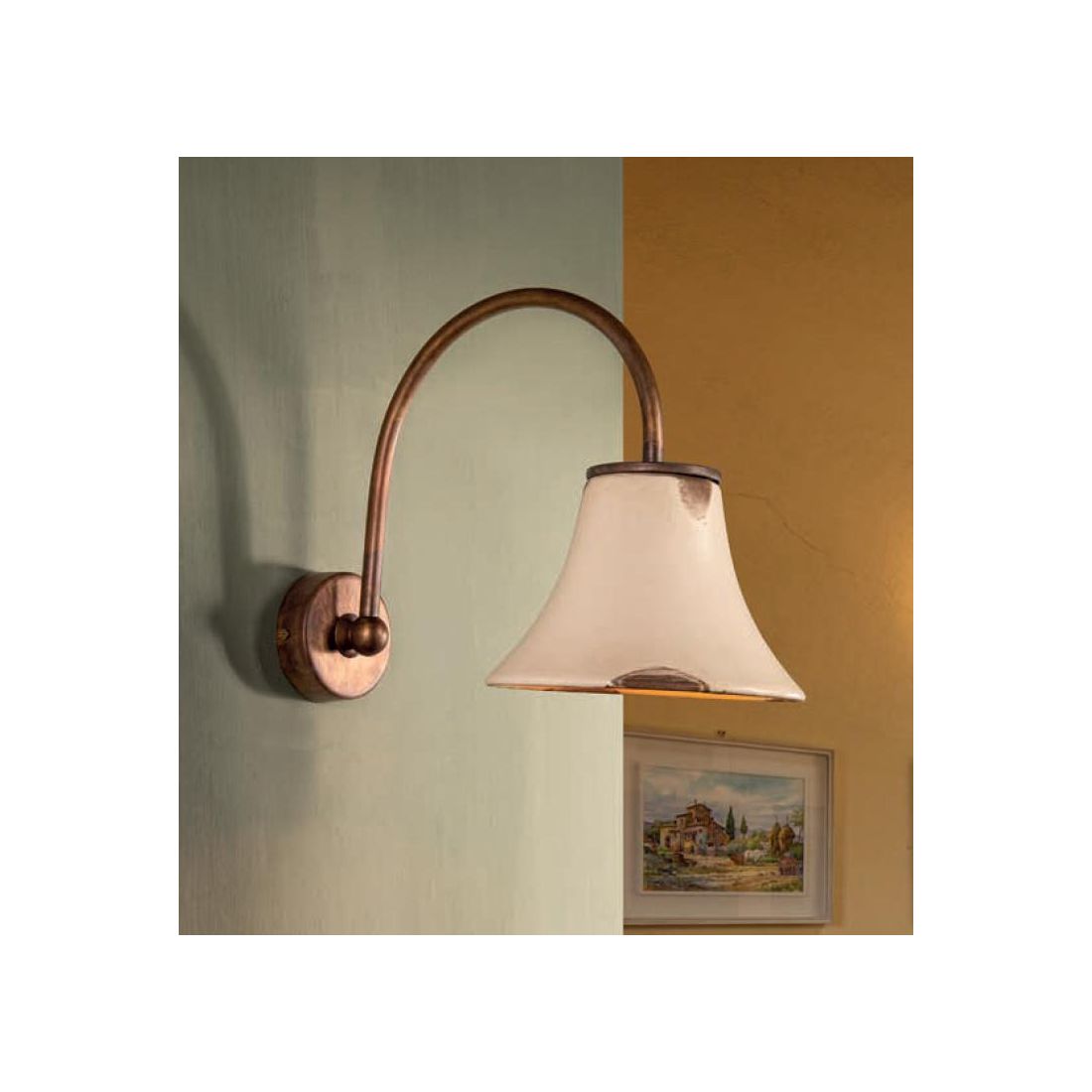 50176/ACLAMPADA DA PARETE IN OTTONE CON DIFFUSORE IN CERAMICA DECORATA STILE RUSTICO MADE IN ITALY DELLA IMAS