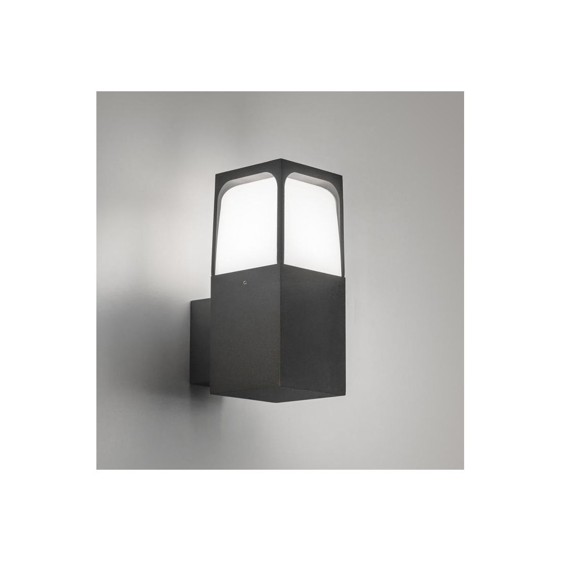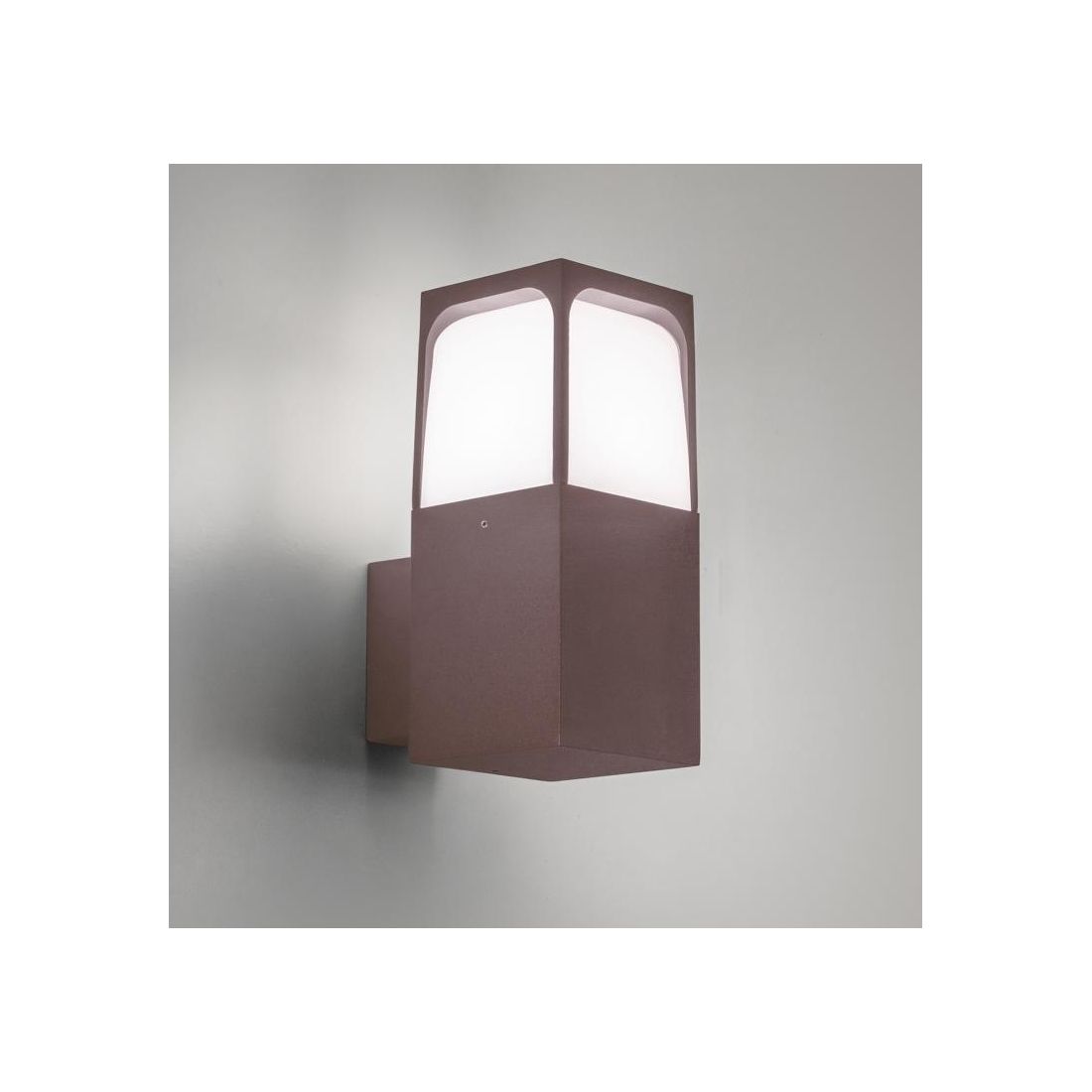 Lampada da parete realizzata in alluminio con finiture Antracite oppure Marrone (a vostra scelta), studiate per integrarsi con discrezione in contesti architettonici moderni, con il diffusore in policarbonato opale grazie al quale la luce viene distribuita in modo omogeneo eliminando ogni fenomeno di abbagliamento diretto.