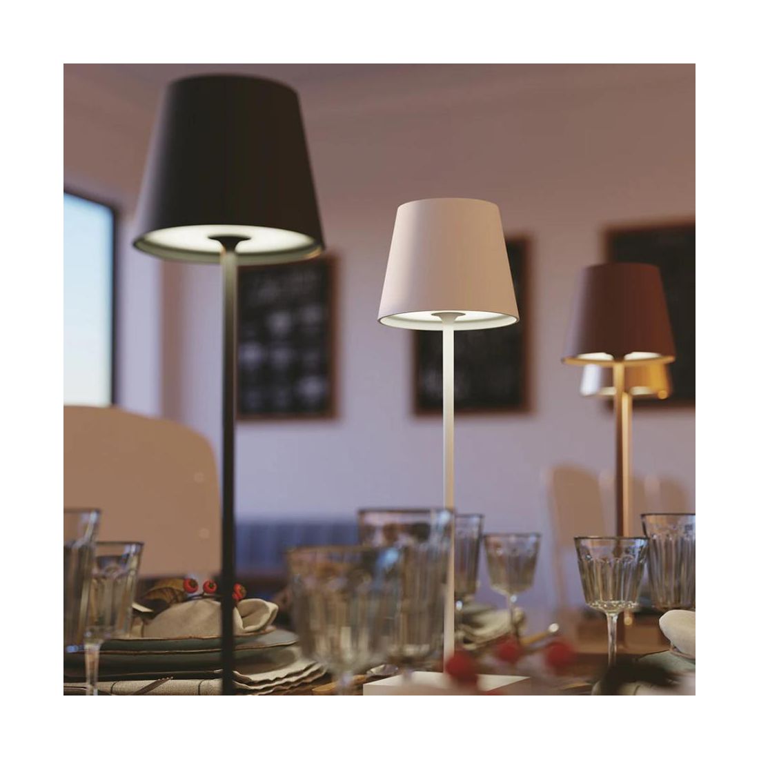 6040LAMPADA DA TAVOLO H36 CM IP54 CON BATTERIA RICARICABILE TOUCH DIMMER LED 2,2W LUCE 3000K 4 COLORI