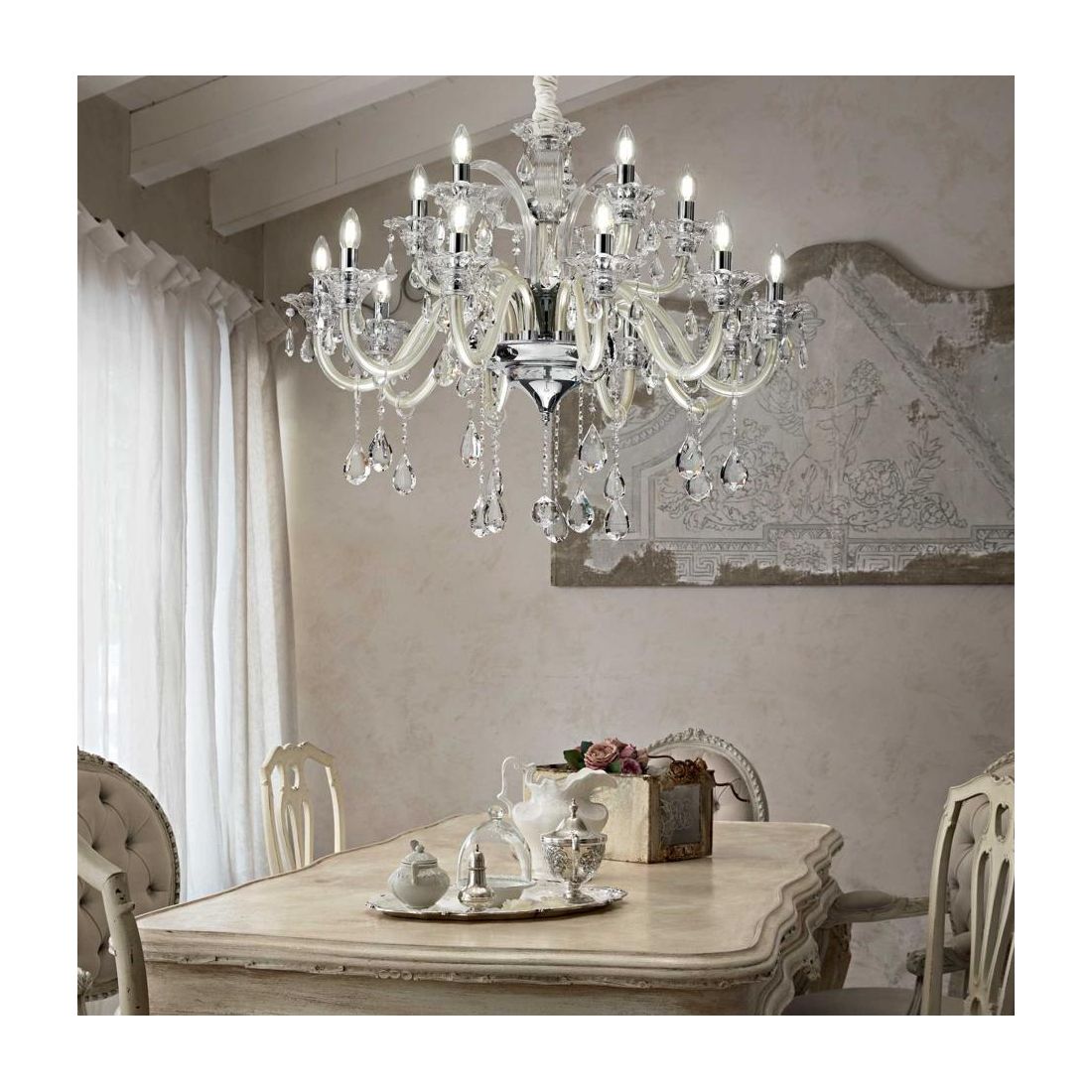 3056LAMPADARIO CLASSICO IN CRISTALLO TRASPARENTE OPPURE GRIGIO ELEGANTE