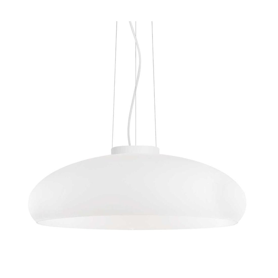 3836LAMPADARIO A SOSPENSIONE IN VETRO BIANCO SOFFIATO D49 CM MODERNO LAMPADINA ATTACCO E27