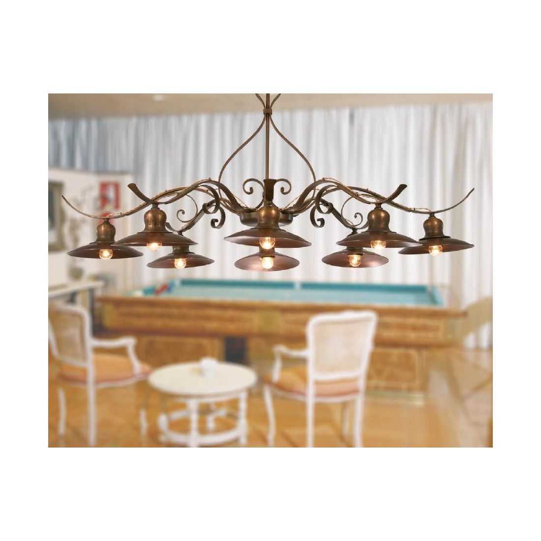 SOSPENSIONE 6 LUCI IN FERRO BATTUTO CON PIATTI D20 MADE IN ITALY DELLA IMAS