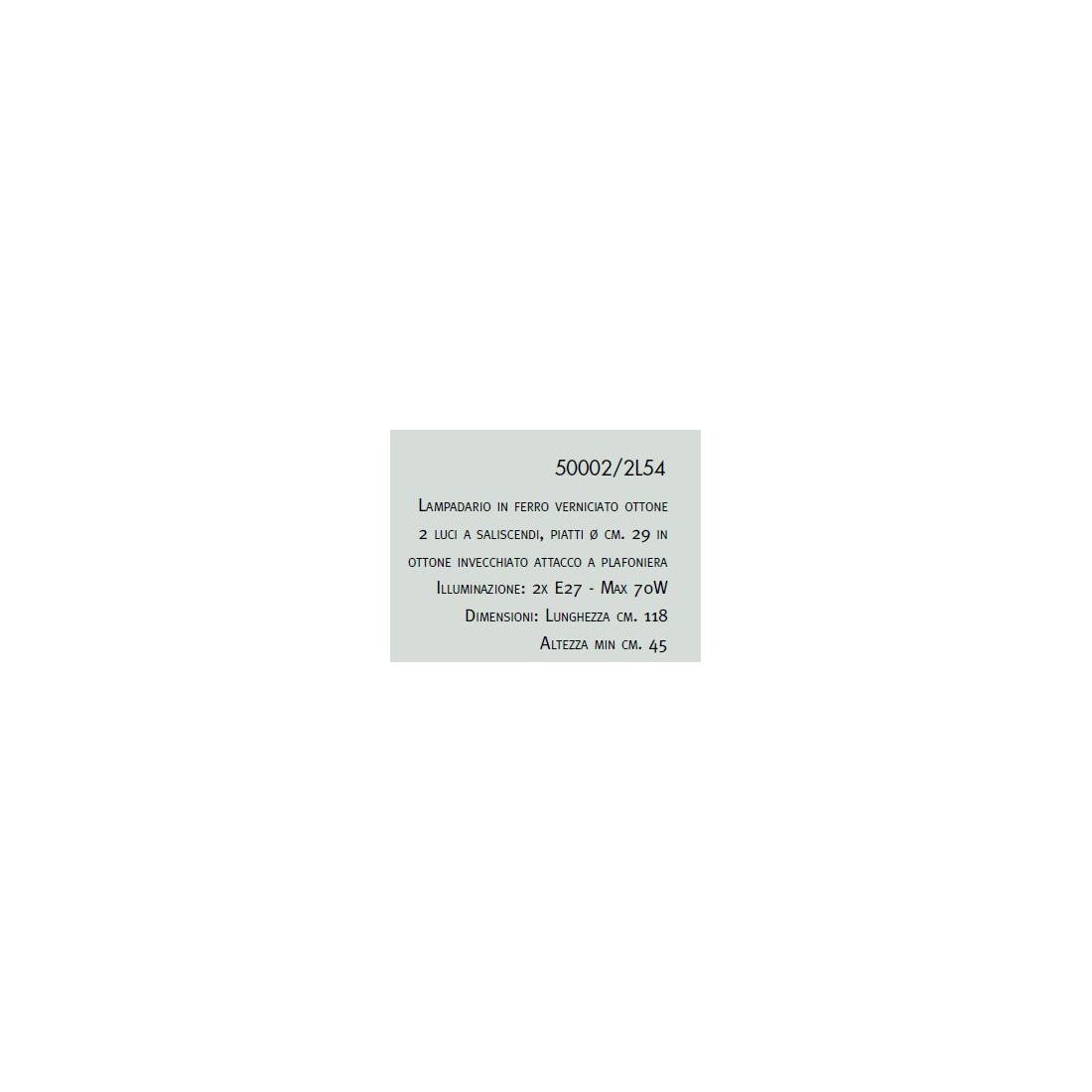 50002/2L54LAMPADARIO SALISCENDI 2 LUCI IN FERRO BATTUTO VERNICIATO OTTONE MADE IN ITALY DELLA IMAS