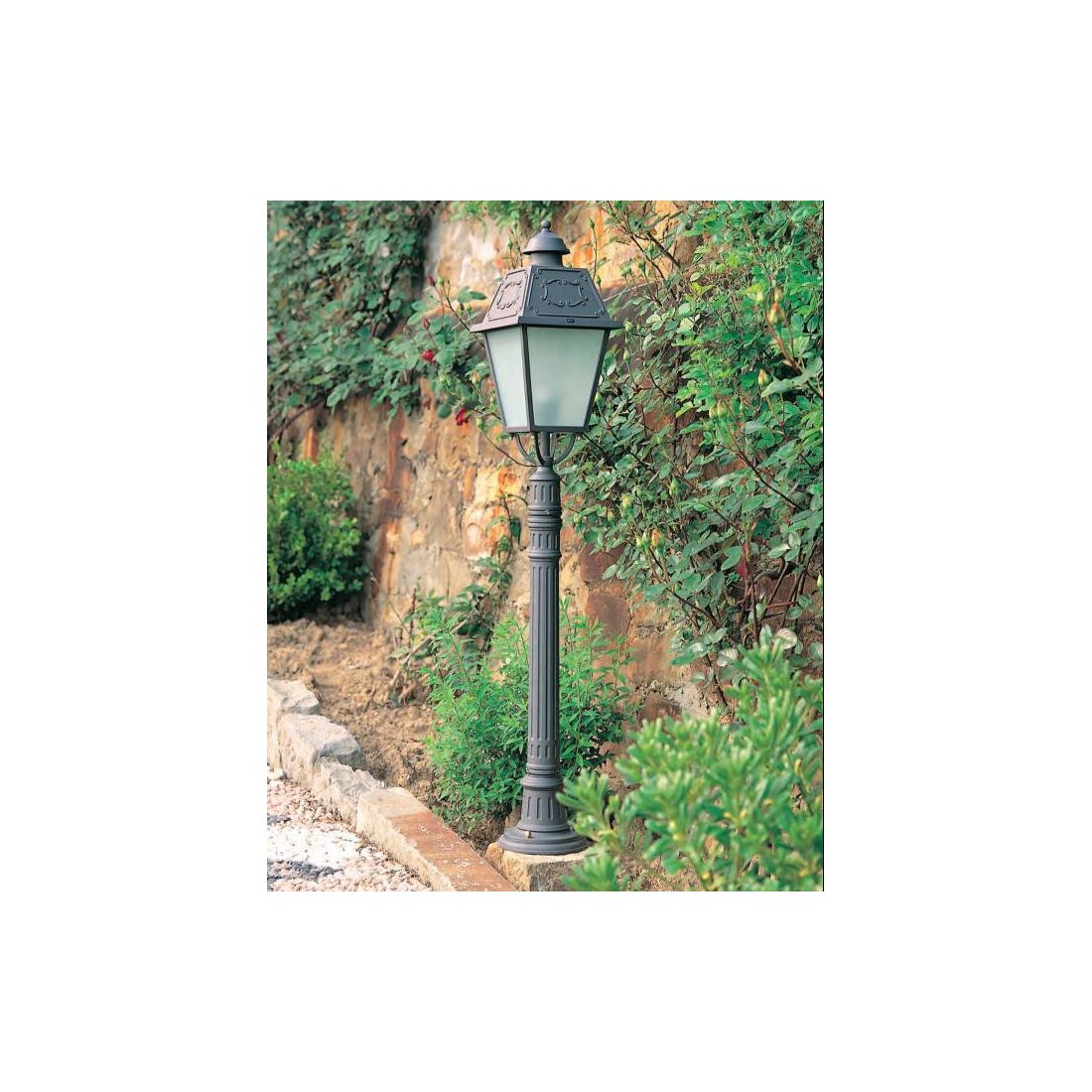 Lampioncino, con altezza totale di cm 121, ideato per gli ambienti esterni, prodotto 100% Made in Italy, che si presenta con una struttura in alluminio pressofuso verniciato a polveri in forno nei colori Antracite o Nero (a vostra scelta) e con il classico diffusore a lanterna prodotto in vetro satinato oppure trasparente, sempre a scelta vostra.