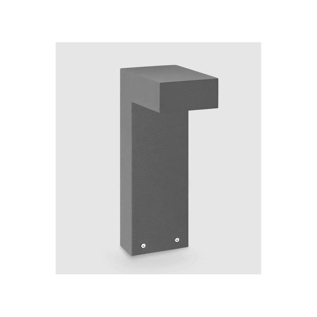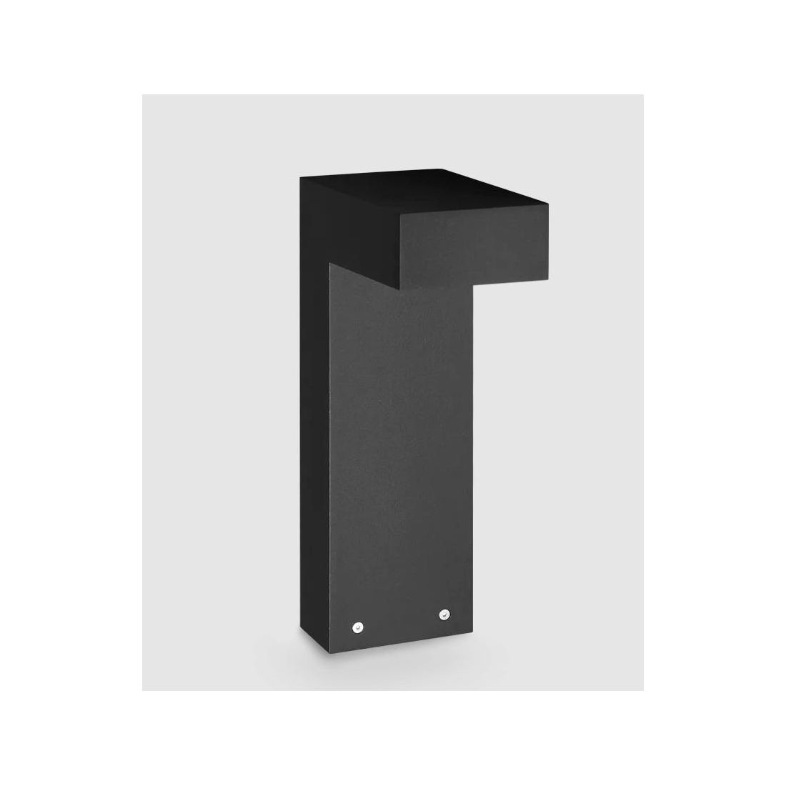 Lampioncino da esterno, con un altezza di 30 cm, ideale per il giardino, design moderno e lineare, reso particolare dalla sua forma a colonnina piegata in alto che orienta la luce esclusivamente verso il basso che illumina la zona circostante.