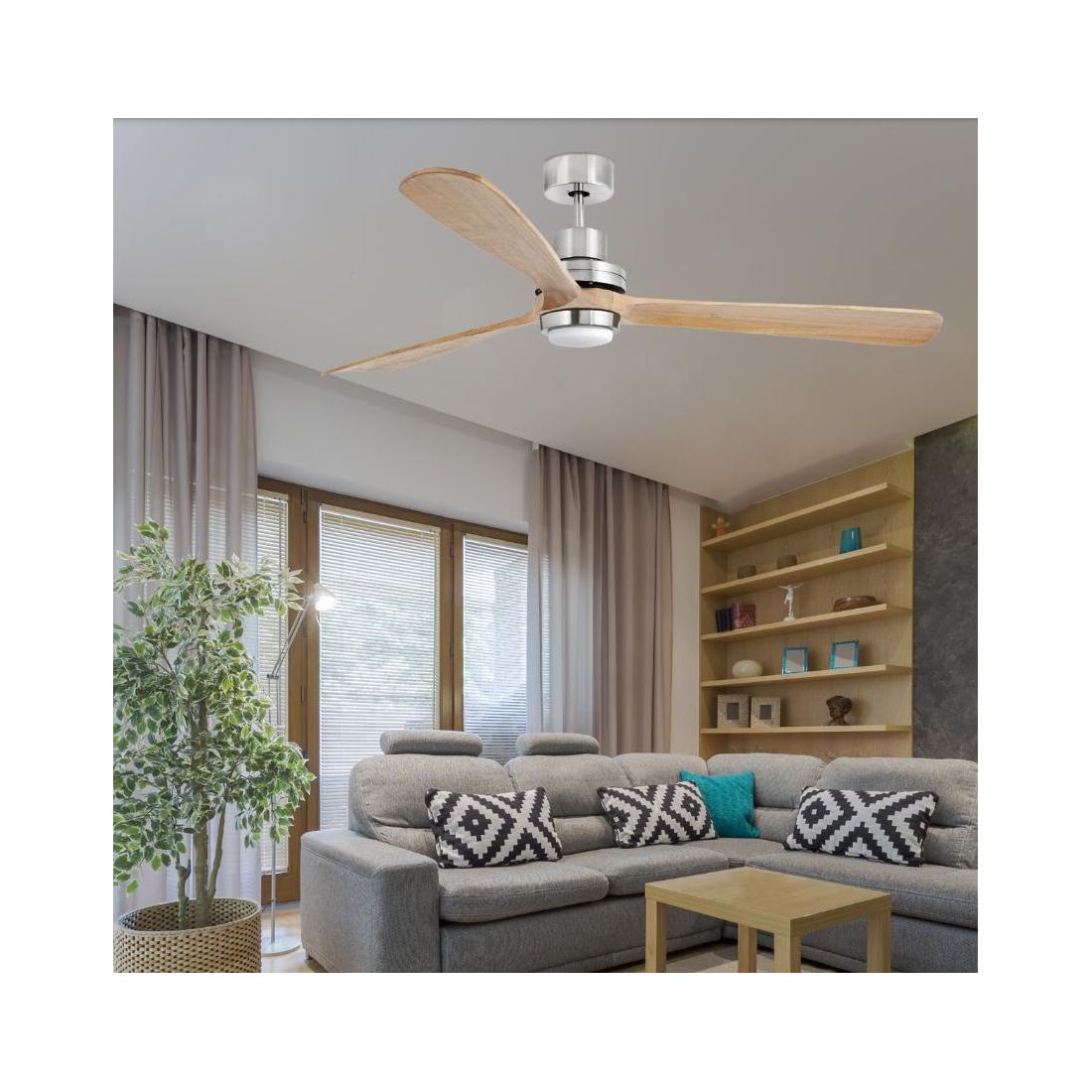 LANTAU L VENTILATORE A SOFFITTO LED 15W LUCE 3000K D132 CM NICKEL CON PALE NOCE O PINO