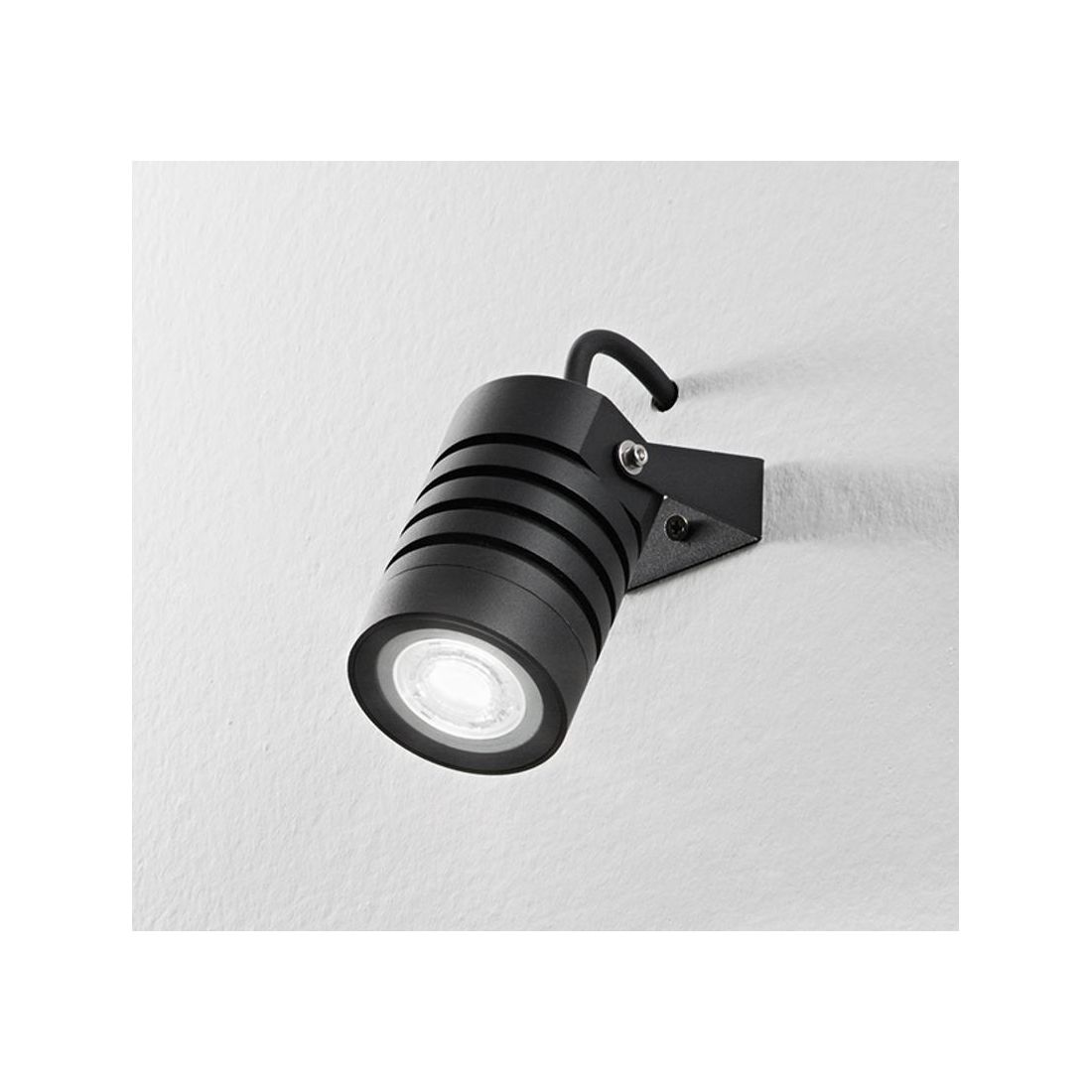 Faretto/Spot da esterno realizzato in pressofusione di alluminio verniciato nei colori Bianco, Nero oppure Corten (a vostra scelta), con base per fissaggio a muro o attacco per picchetto da terra; il picchetto non è incluso ma acquistabile separatamente con il codice 549P.