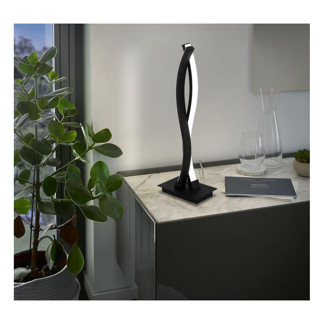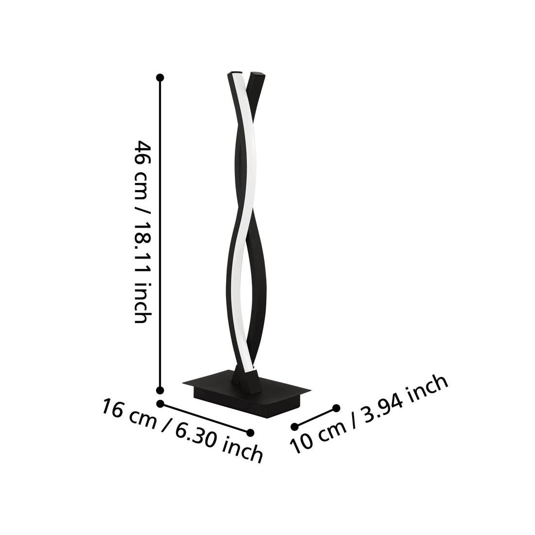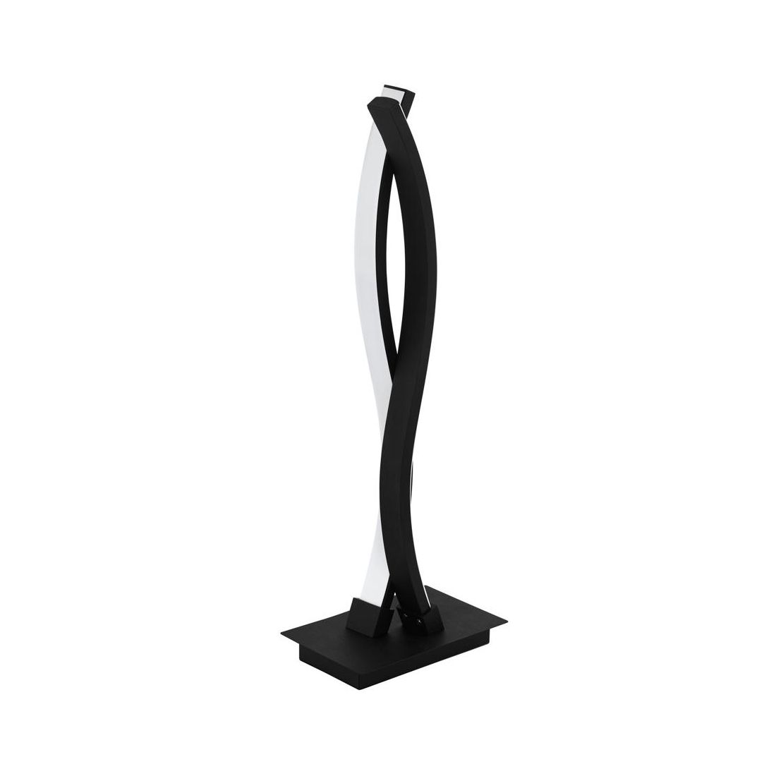 Lampada da tavolo con un design moderno composta da due profili a Led ondulati in acciaio con una finitura Nera e con i diffusori in policarbonato bianco che emanano una luce bianca piacevolmente calda; ideale per credenze, comodini o uffici moderni dove conferisce un tocco di stile.