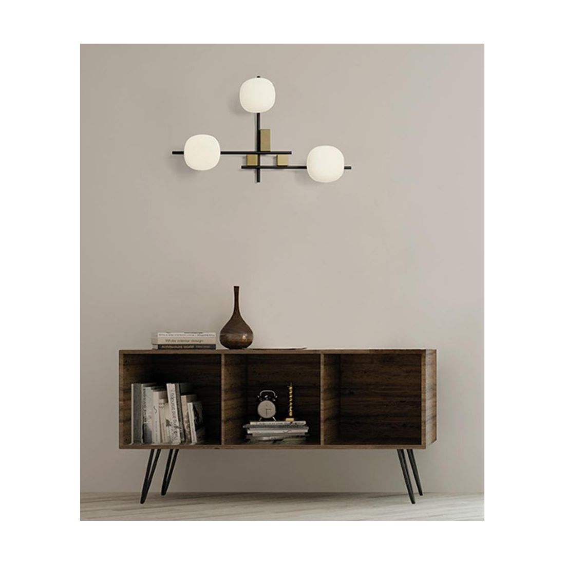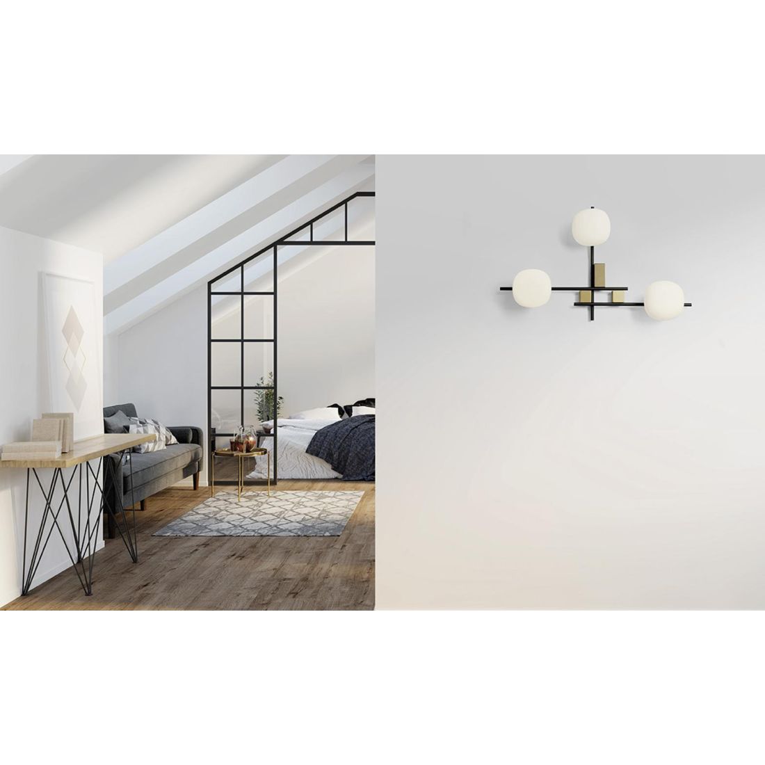 LINGOTTO APPLIQUE A 4 LUCI METALLO NERO - ORO CON DIFFUSORI IN VETRO LAMPADINE ATTACCO G9