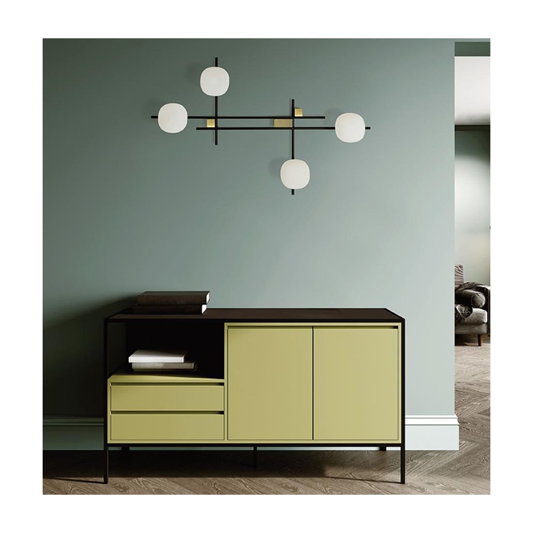 LINGOTTO APPLIQUE A 2 LUCI METALLO NERO - ORO CON DIFFUSORI IN VETRO LAMPADINE ATTACCO G9