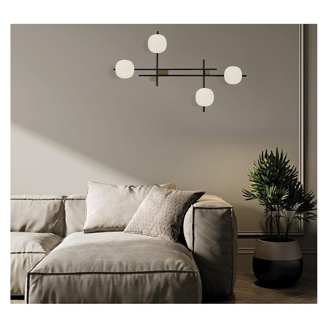 LINGOTTO APPLIQUE A 3 LUCI METALLO NERO - ORO CON DIFFUSORI IN VETRO LAMPADINE ATTACCO G9