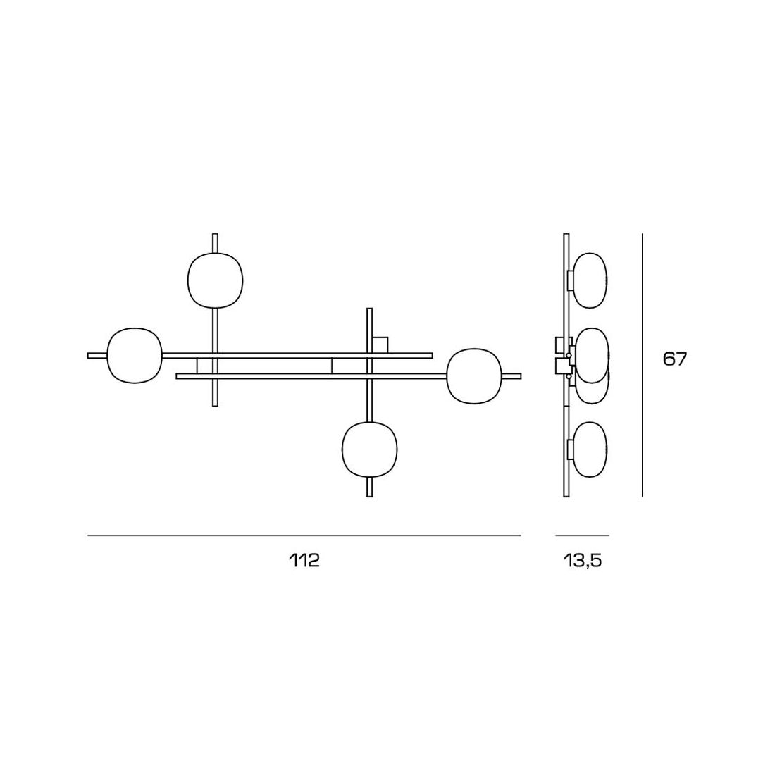 LINGOTTO PLAFONIERA APPLIQUE A 5 LUCI METALLO NERO - ORO CON DIFFUSORI IN VETRO...