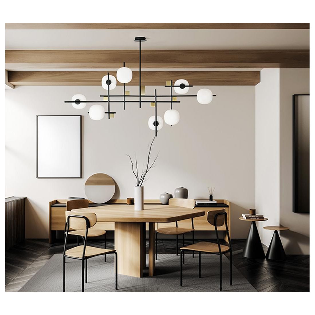 LINGOTTO PIANTANA MODERNA 5 LUCI METALLO NERO - ORO CON DIFFUSORI IN VETRO LAMPADINE...