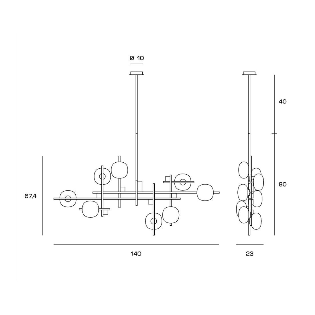 LINGOTTO APPLIQUE A 2 LUCI METALLO NERO - ORO CON DIFFUSORI IN VETRO LAMPADINE ATTACCO G9
