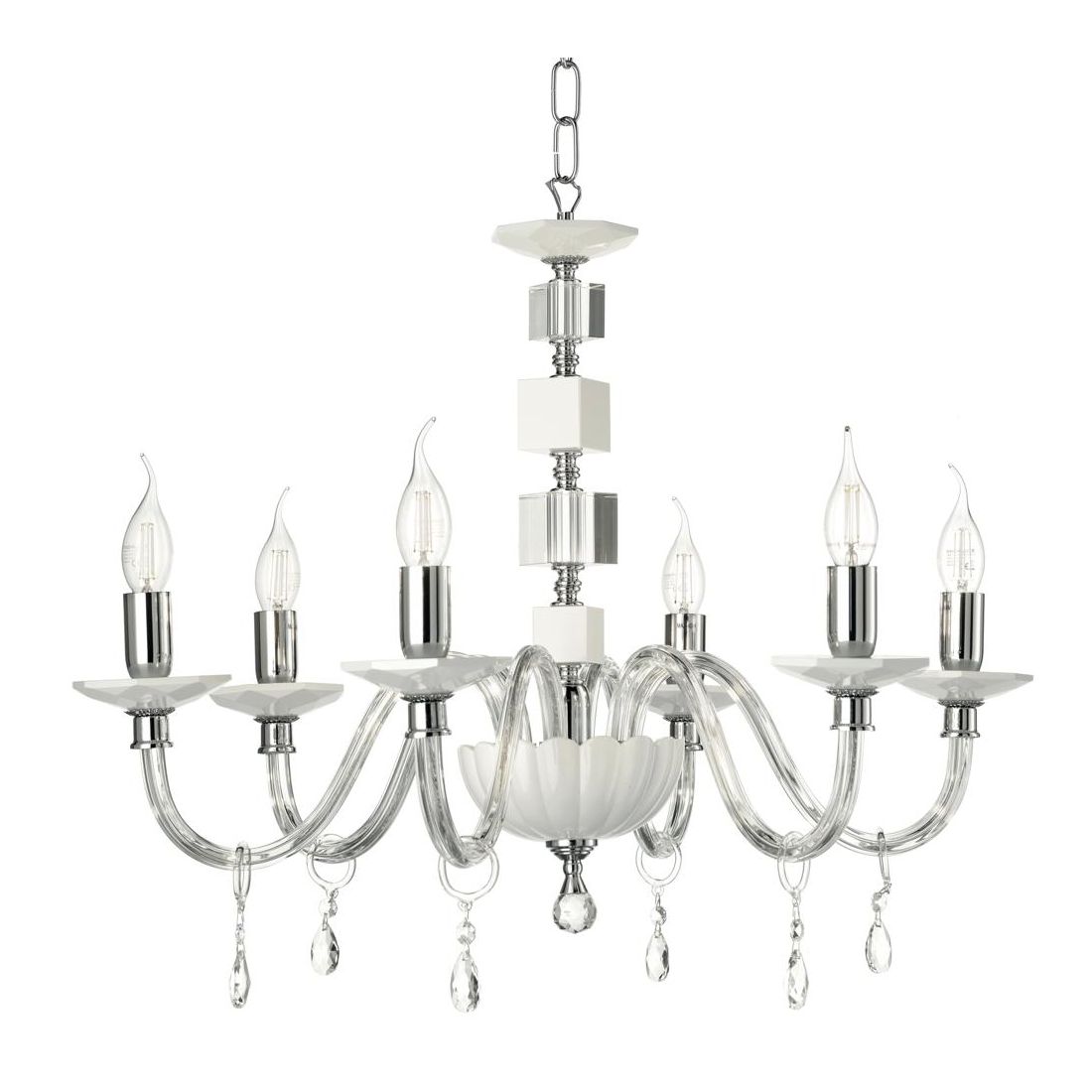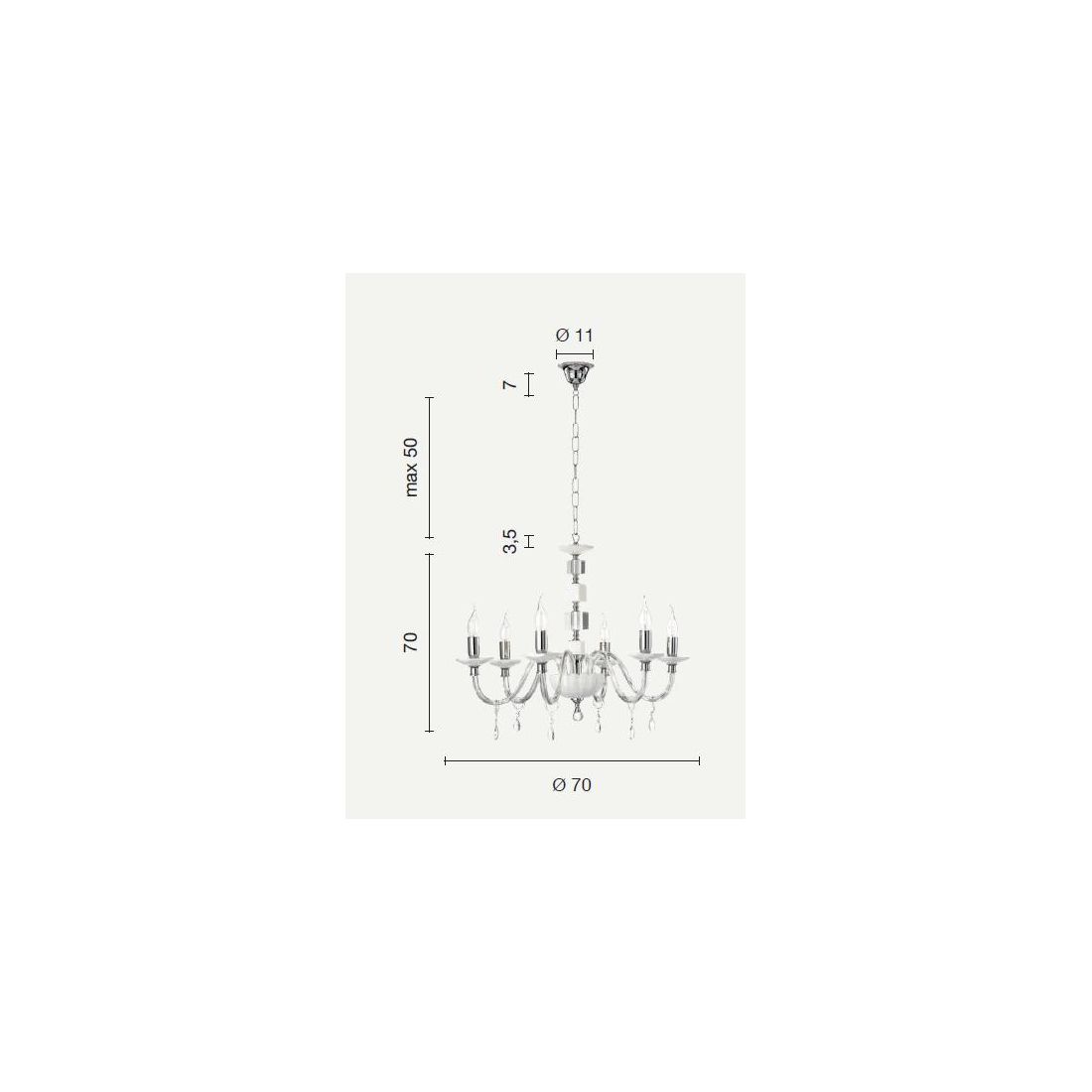 LIVIA LAMPADARIO A SOSPENSIONE CLASSICO IN VETRO E CRISTALLO 8 LUCI BIANCO,FUME,OTTANIO...