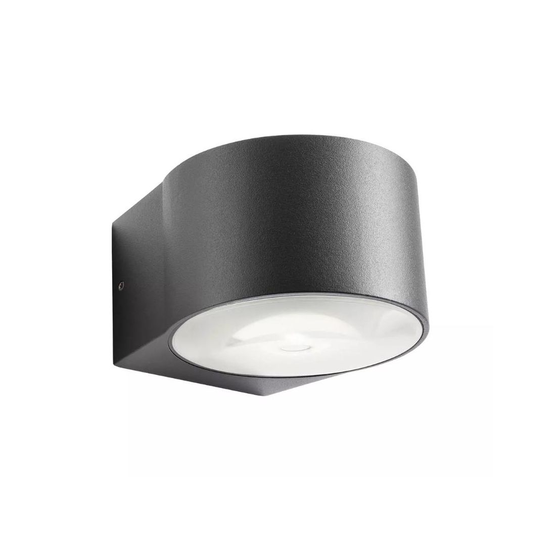 Applique di forma rotonda, con diametro di 10 cm, dal design moderno, progettata per un'illuminazione a doppia emissione (bi-emissione), distribuendo il flusso luminoso in modo diretto e indiretto orientato con eleganza sia verso l'alto che verso il basso.
