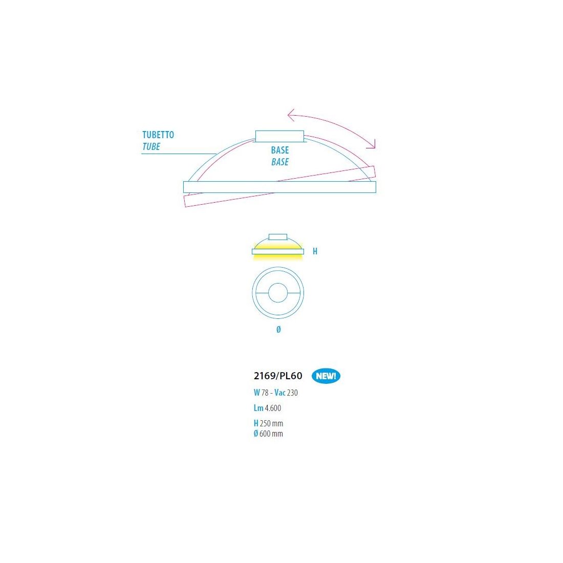 Plafoniera dallo stile moderno, con un diametro di cm 60, che si distingue per il suo profilo circolare in alluminio verniciato con una doppia finitura: Ferro sulla parte esterna e Foglia Argento all’interno, un abbinamento che conferisce eleganza e modernità all’ambiente. Il corpo illuminante è completato da diffusori in silicone satinato studiati per garantire una diffusione della luce in entrambe le direzioni (verso il soffitto e verso il basso) creando un’illuminazione bilanciata e scenografica ideale per valorizzare ogni spazio con un’atmosfera sofisticata e accogliente.