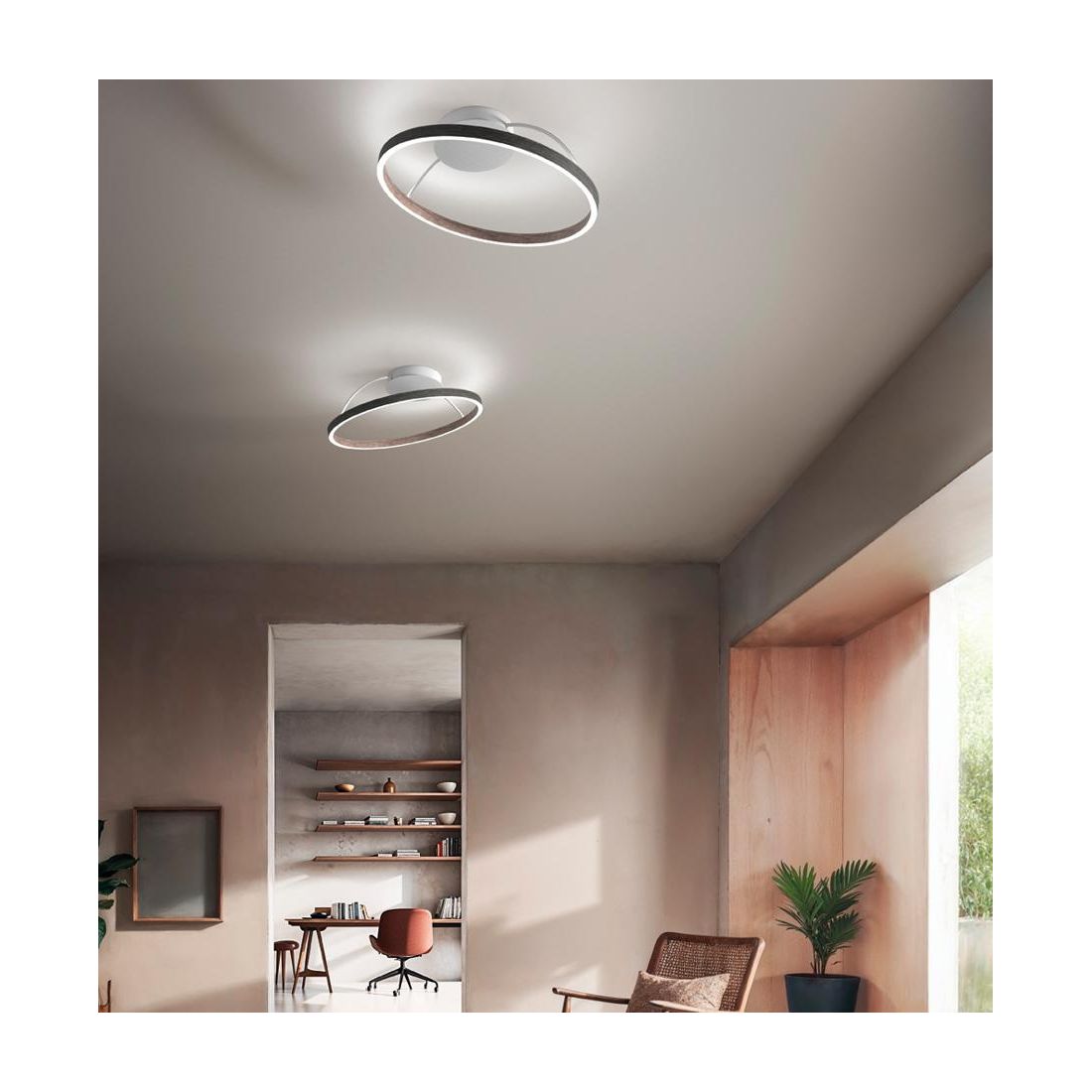 2169 PL60LOOP PLAFONIERA CIRCOLARE FINITURA FERRO E FOGLIA ARGENTO BIEMISSIONE LED 78W LUCE 2700K, 3000K E 4000K MODERNA