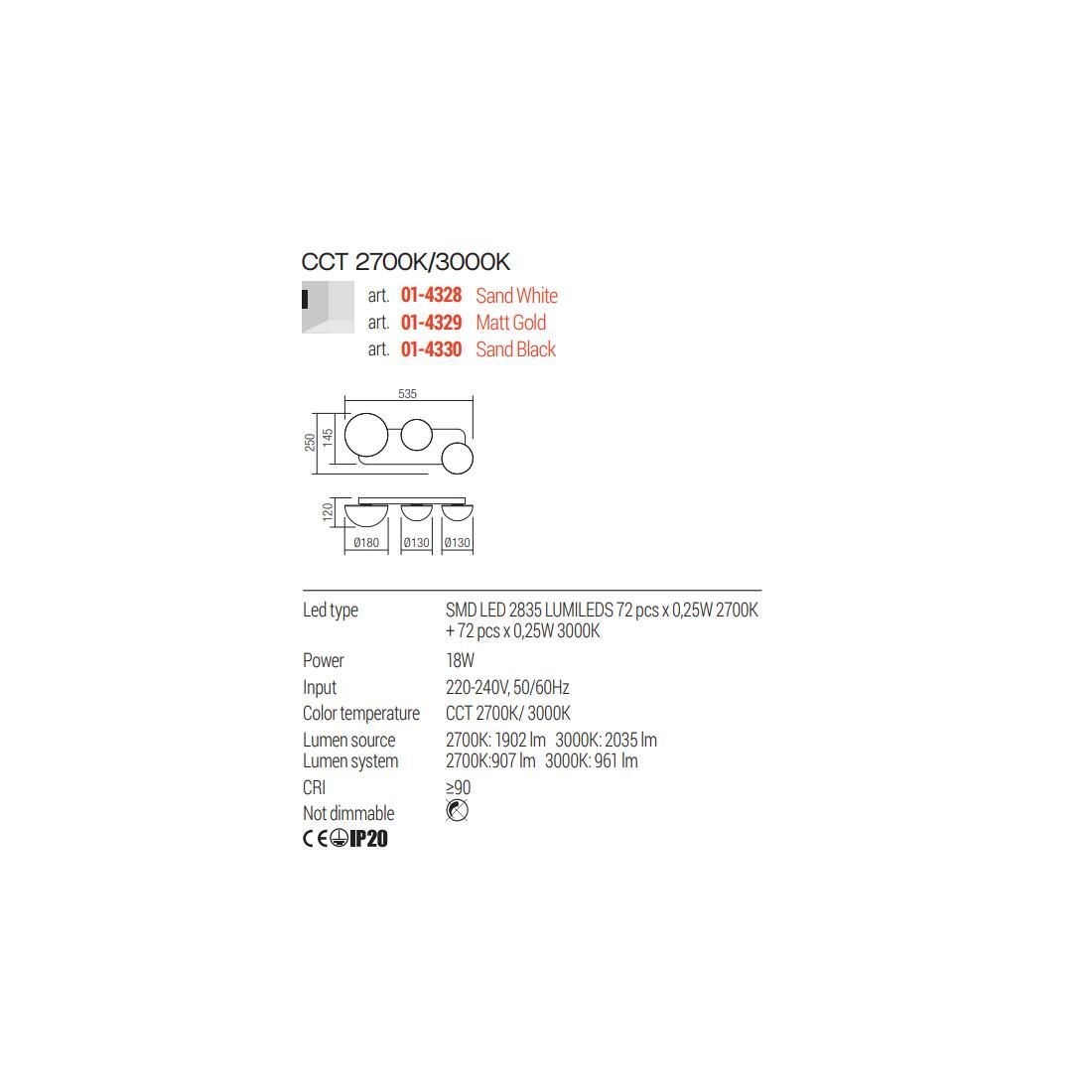 LUMIEN APPLIQUE A 2 LUCI LED 13,4W LUCE CCT 2700K-3000K IN METALLO BIANCO, NERO E ORO...