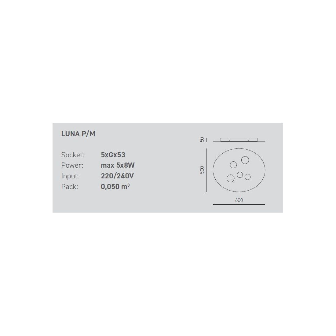 Lampadine consigliate: 5xGX53 max 8w cadauna