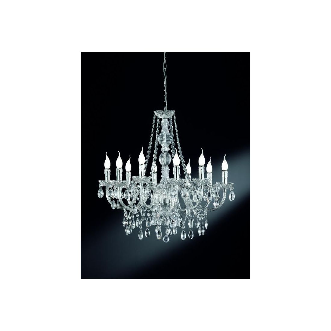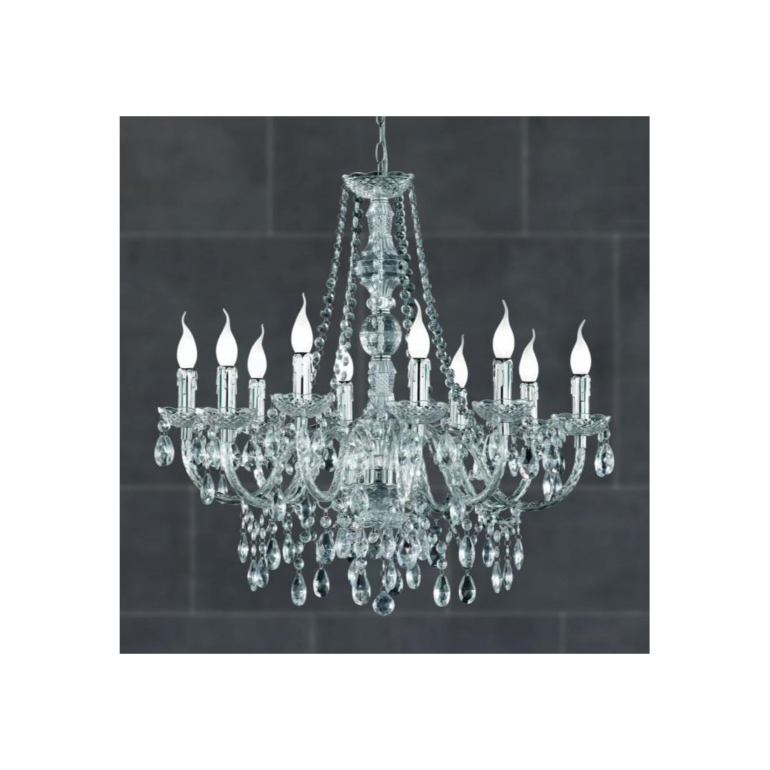 LUSTER LAMPADARIO A SOSPENSIONE 9 LUCI IN METALLO CROMO E ACRILICO TRASPARENTE D60 CM...