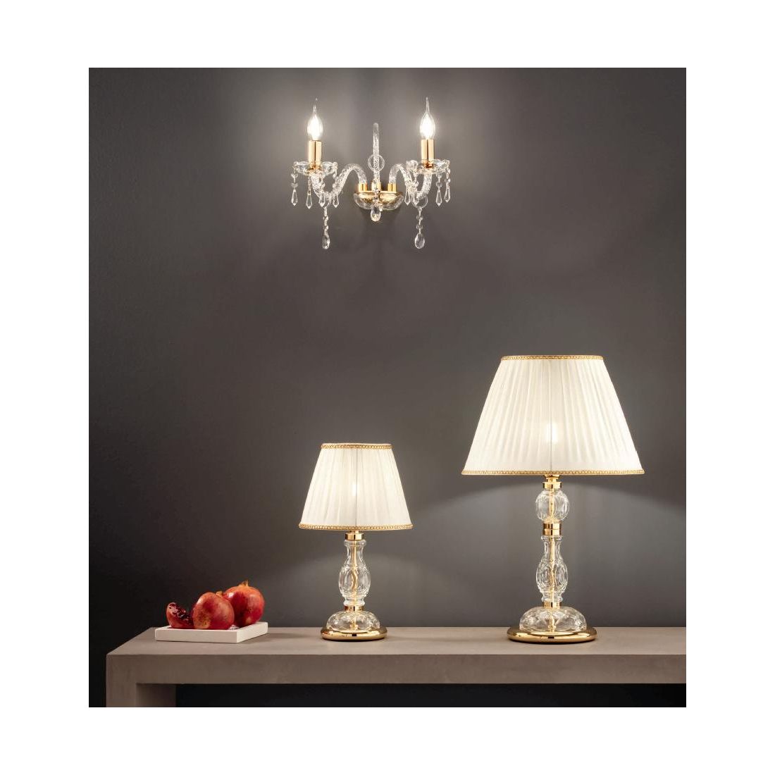 MARIA TERESA T4 LAMPADA DA TAVOLO IN CRISTALLO TRASPARENTE E METALLO DORATO DI CICIRIELLO