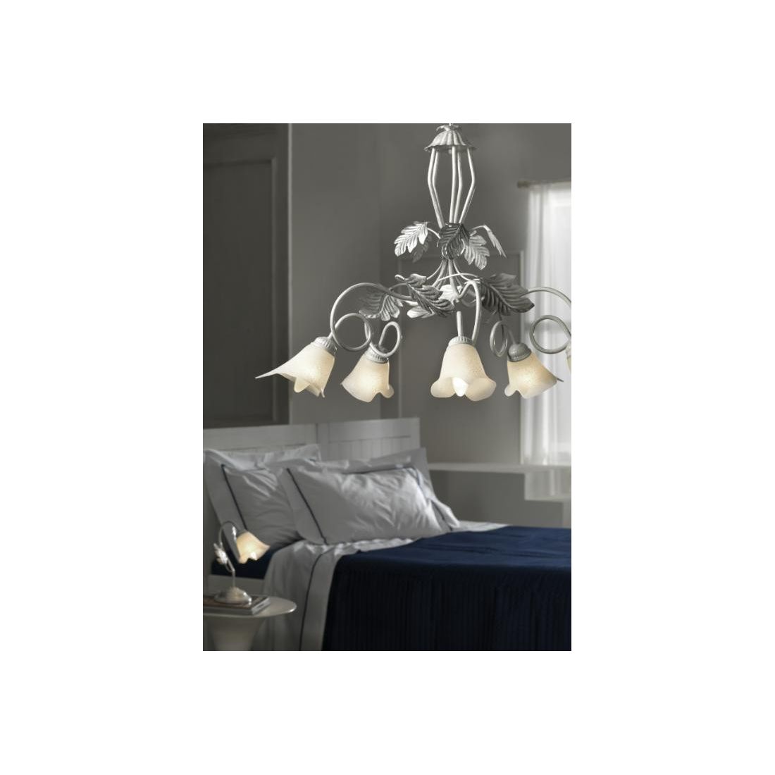 MARILENA PLAFONIERA 5 LUCI CLASSICA IN METALLO BIANCO/ARGENTO CON PARALUMI IN VETRO