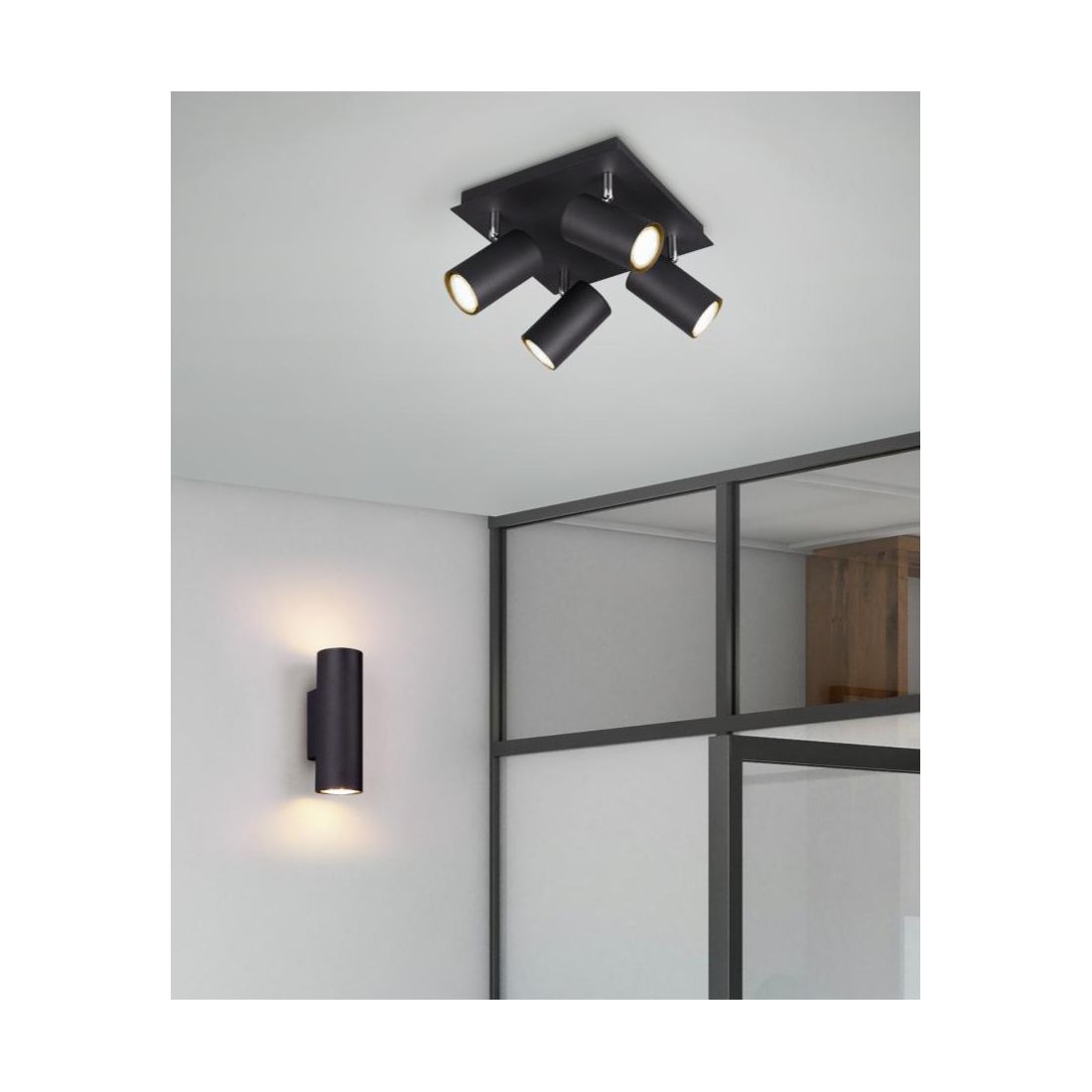 MARLEY SOSPENSIONE IN METALLO NERO CON 4 SPOT CILINDRO ORIENTABILI ATTACCO 4XGU10