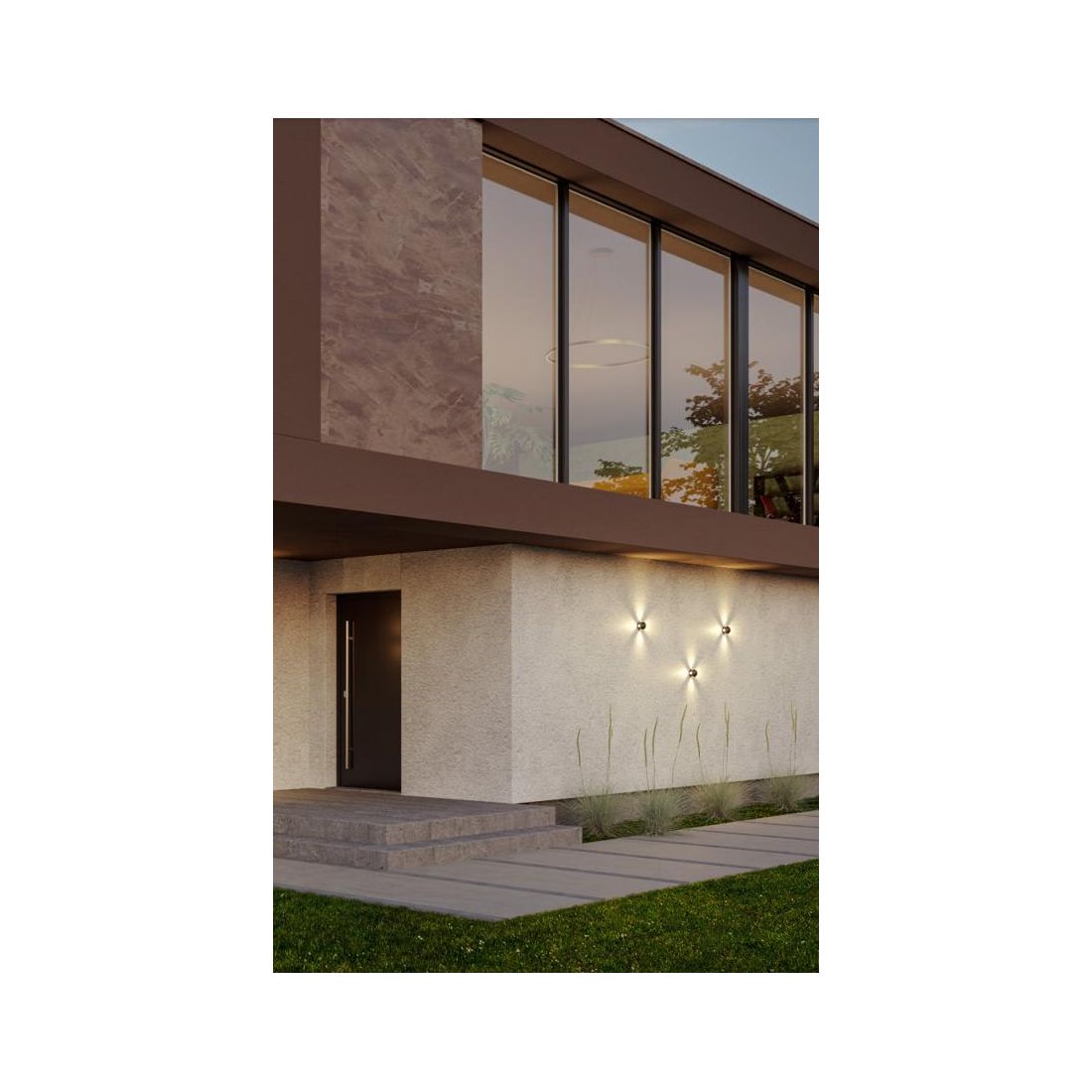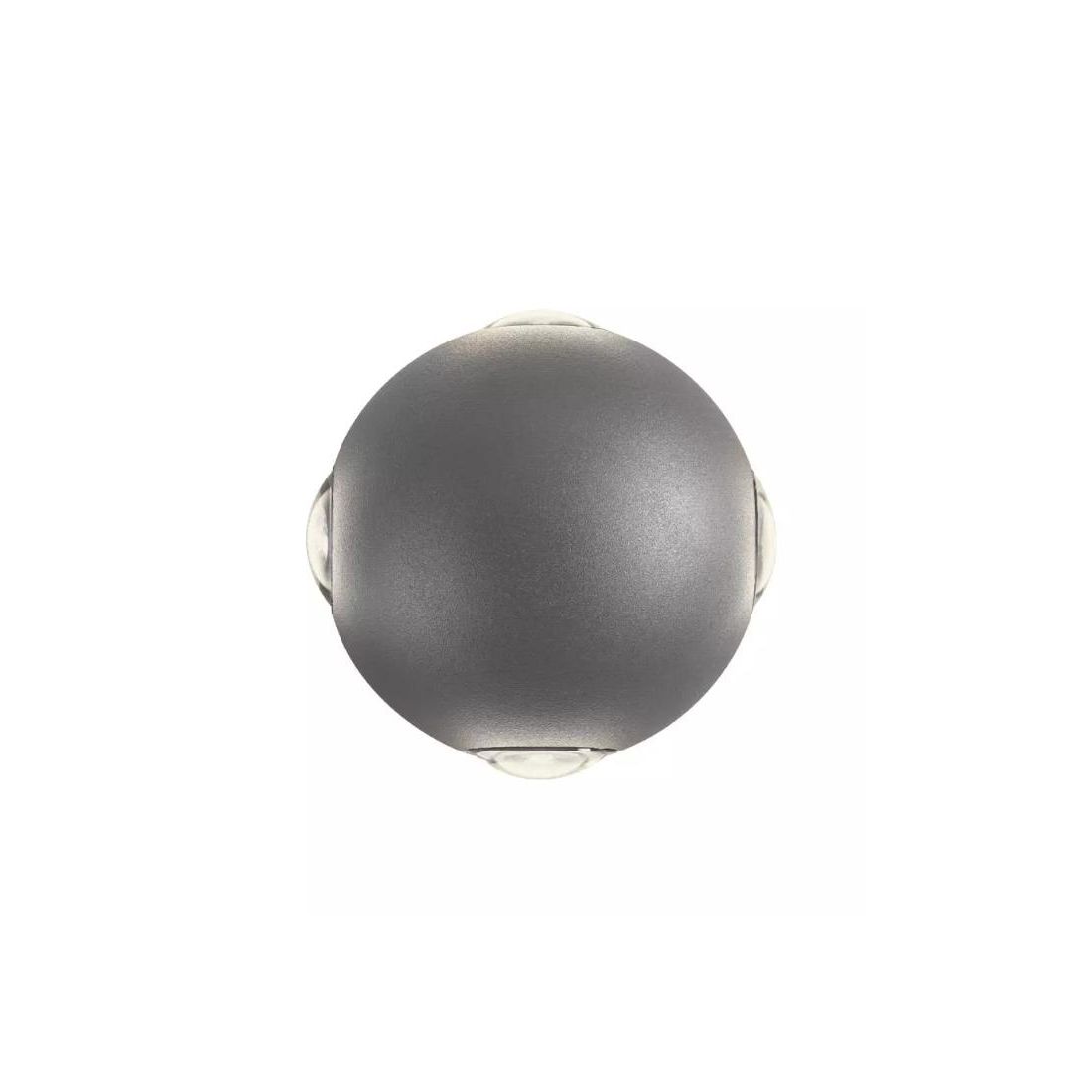 Lampada da parete che si distingue per il suo design moderno ed esclusivo caratterizzato da una struttura sferica realizzata in pressofusione di alluminio, trattata con verniciatura a polveri per garantire resistenza e durabilità, disponibile in due diverse colorazioni, Bianco e Antracite, che si adatta perfettamente a qualsiasi stile di arredamento offrendo un’estetica contemporanea e particolare.