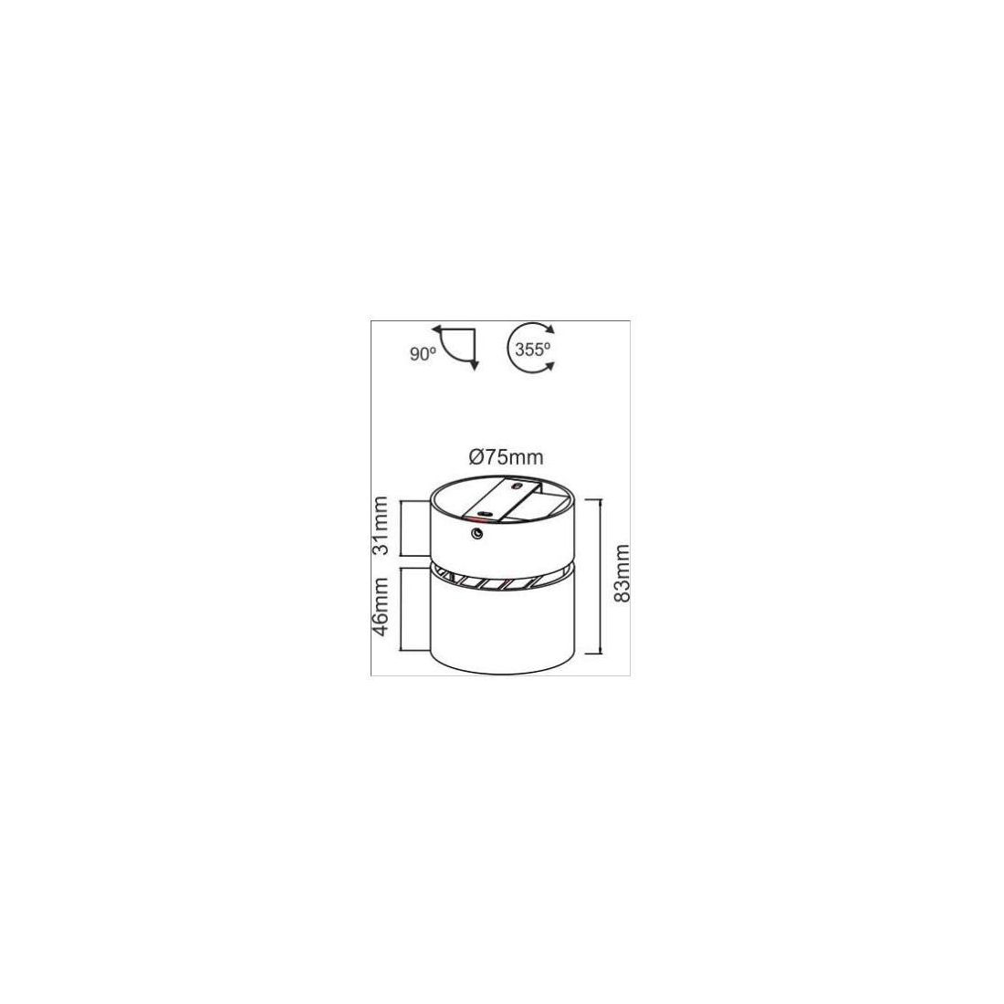 Mini Concord di Beneito un applique plafoniera proiettore cilindrica a Led da 7w di consumo alimentata direttamente a 230V con il diffusore inclinabile a 90° e base a di fissaggio con rotazione di 355° sul proprio asse in modo da direzionare il fascio luminoso dove è più necessario.