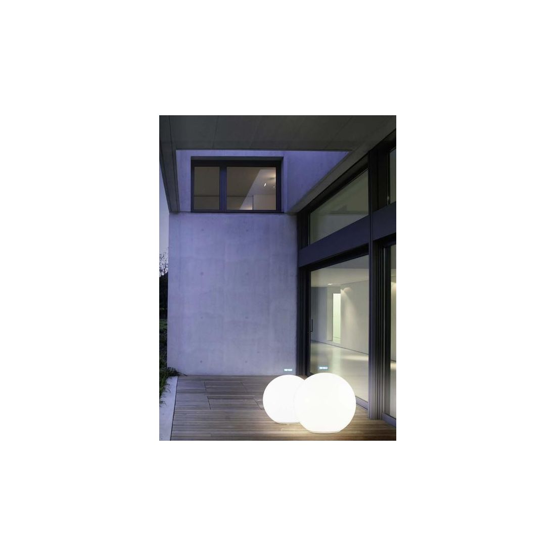 Lampada a sfera realizzata completamente in policarbonato bianco ad alta resistenza; la sua forma la rende adatta per illuminare ed arredare gli ambienti esterni; con la sua linea semplice ed essenziale crea la giusta sintonia in qualsiasi tipo di utilizzo negli spazi verdi.