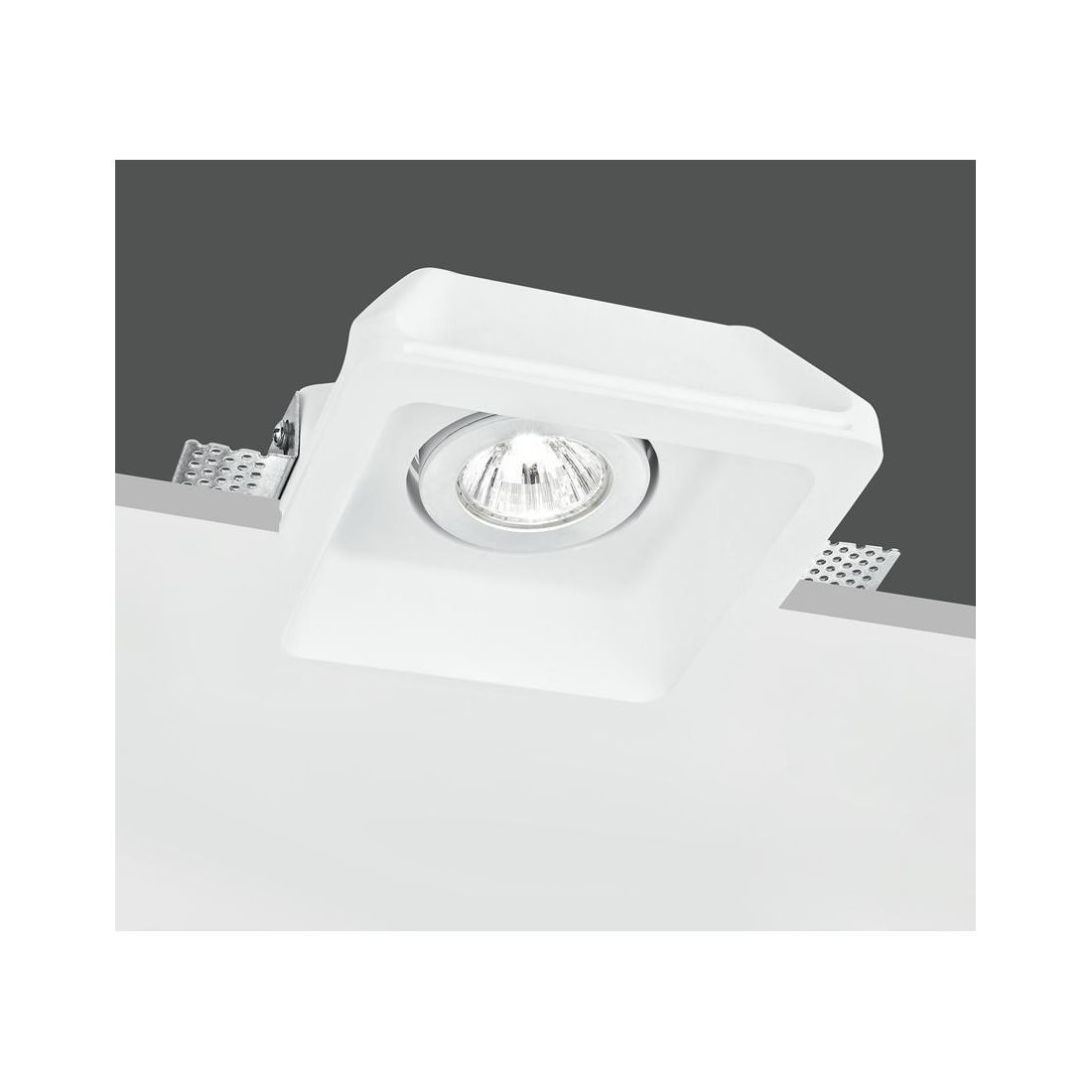 Faretto da incasso, perfetto per integrarsi armoniosamente in qualsiasi ambiente, disponibile in forma rotonda o quadrata (a vostra scelta) che si presenta con una struttura a scomparsa realizzata in gesso bianco verniciabile ideale per il montaggio in controsoffitti in cartongesso e può essere installato singolarmente, per un’illuminazione puntuale, oppure in configurazioni multiple per creare suggestivi giochi di luce.