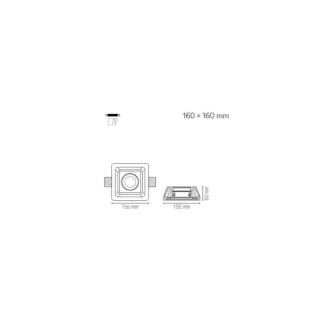 Incasso quadrato: misure cm 15.5x15.5 - altezza cm 6 - misure foro cm 16x16
