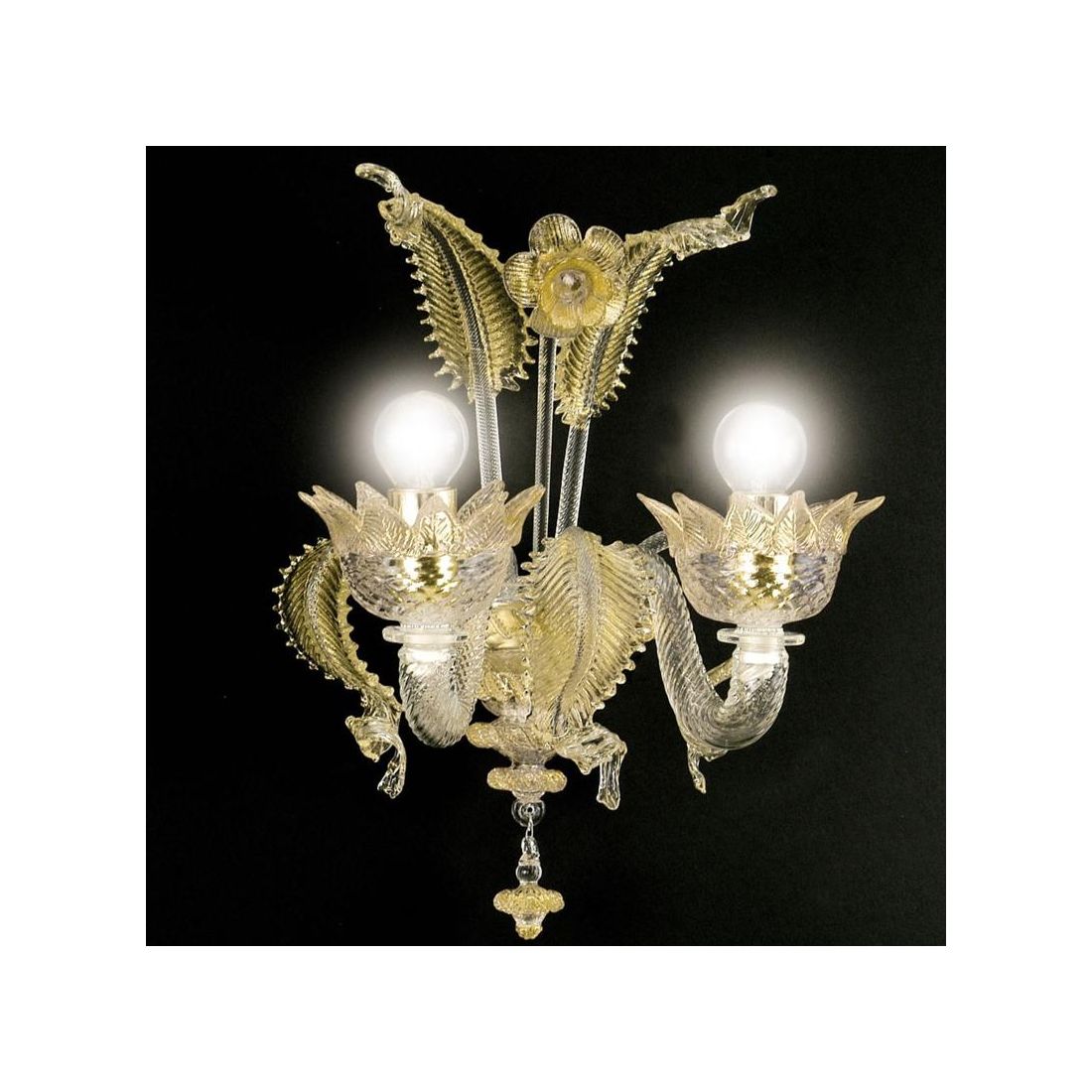 MURANO LUMETTO CLASSICO IN VETRO DI MURANO TRASPARENTE CON FINITURE ORO 24K LAVORATO A...