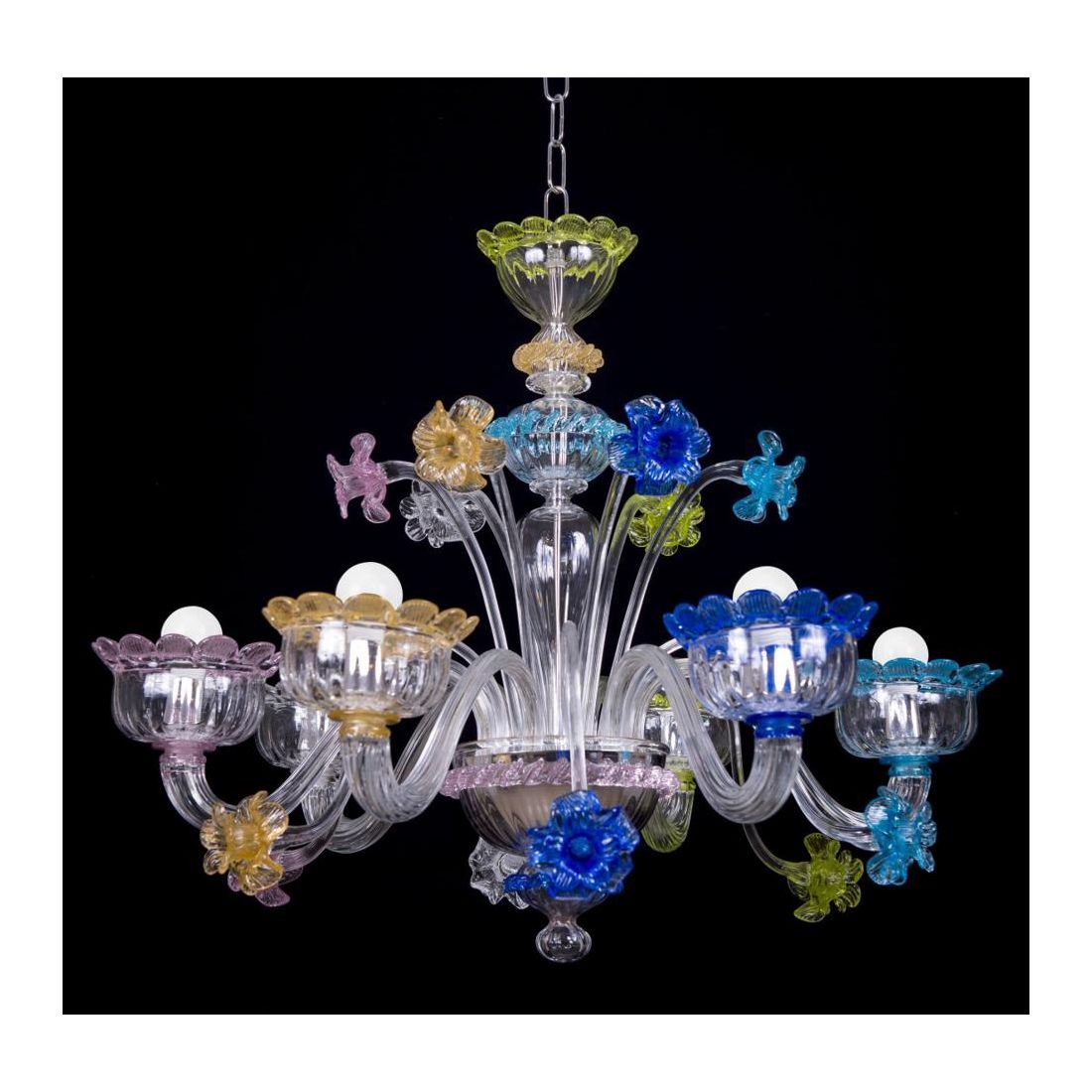 MURANO FIORI LP6MURANO FIORI LAMPADARIO 6 LUCI IN VETRO DI MURANO LAVORATO A MANO MULTICOLOR MADE IN ITALY