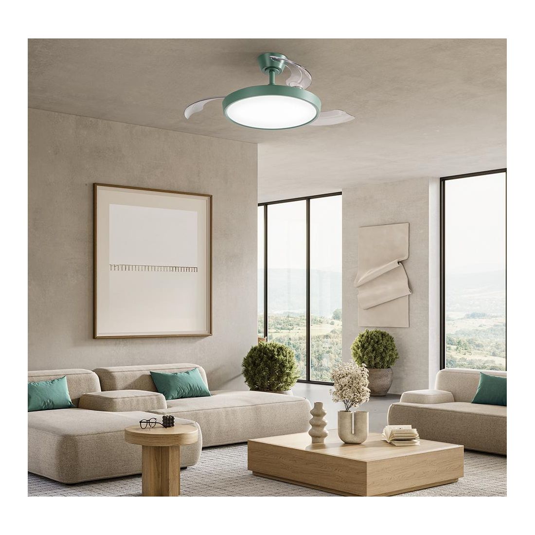 Ventilatore con design moderno, che si presenta con la struttura in metallo verniciato a polveri nei colori Rosso, Sabbia e Verde (a vostra scelta) con 3 pale motorizzate, prodotte in acrilico trasparente, che si aprono automaticamente quando il ventilatore è in funzione e si richiudono in modo discreto all’interno della struttura quando viene spento contribuendo a una manutenzione ridotta e a un impatto visivo minimale. In dotazione sono fornite due aste di prolunga (12 cm e 25 cm) per personalizzare l’altezza di installazione in base alle caratteristiche del soffitto o alle esigenze di comfort. Con un diametro di 106 cm, a pale aperte, è ideale per rinfrescare efficacemente ambienti fino a 20 m² come soggiorni, camere da letto, cucine, studi o uffici.