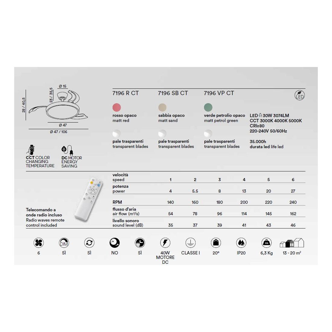 7196 R-SB-VP CTMYRA VENTILATORE D106 CM CON PALE A SCOMPARSA LED 30W CCT 3000-4000-5000K 3 COLORI TELECOMANDO INCLUSO