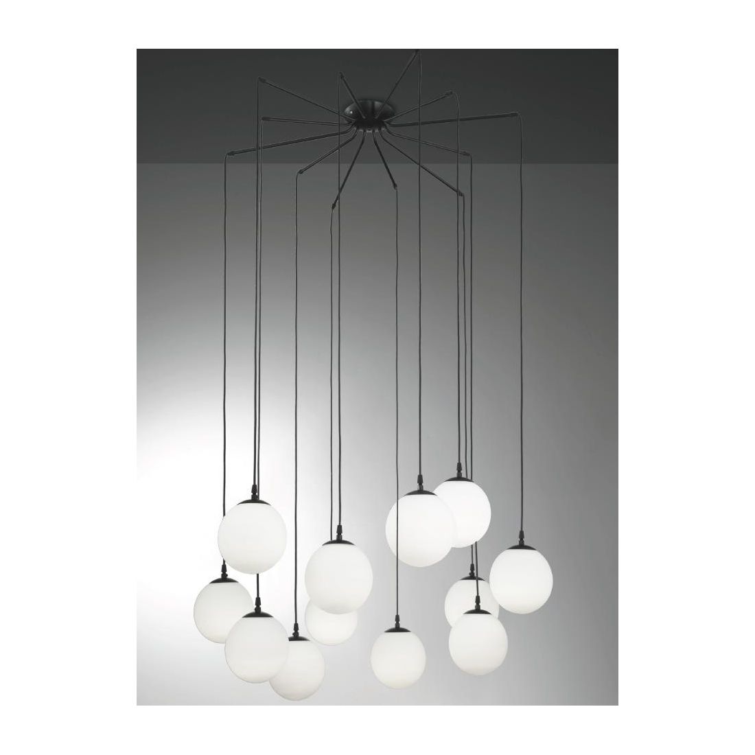 NIAGARA LAMPADARIO 8 LUCI IN METALLO NERO CON SFERE IN VETRO BIANCO OPALE MODERNO...