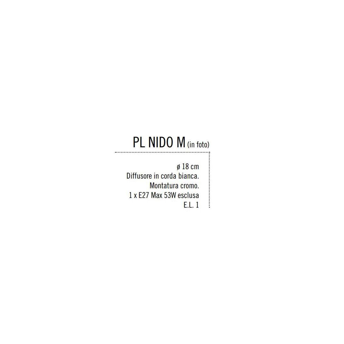 NIDO MEDIA PLAFONIERA IN CORDA BIANCA INCOLLATA DIAMETRO 18 CM Illuminando - Cristalensi Shop Online